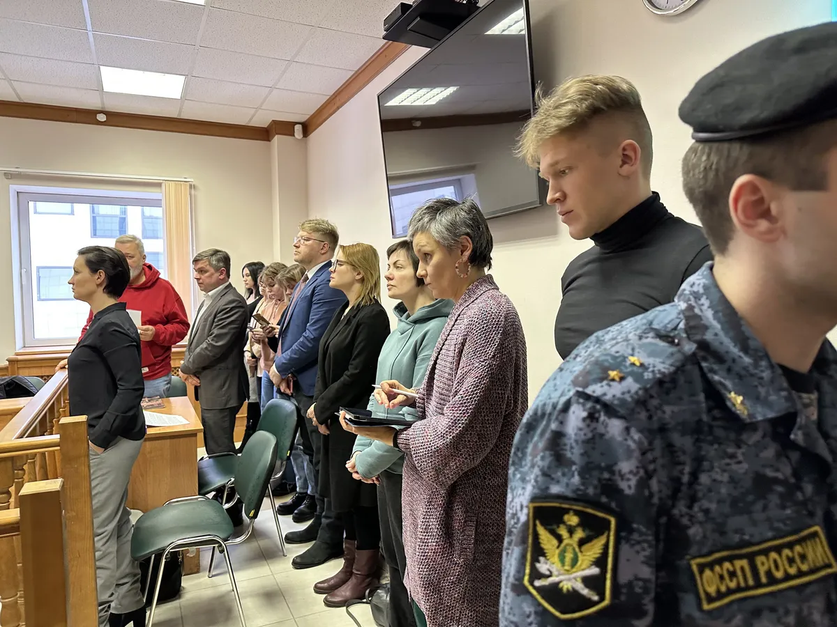 Заседания об окончательном лишении «Новой газеты» и журнала «НО» («Новой рассказ-газеты») в Московском городском суде были назначены на 11:50 и 11:55 — на вынесение решений об отзыве лицензии у медиа с тридцатилетней историей было отведено по пять минут времени. Судя по всему, судье Милых привычно работать на «судебном конвейре» — к тому моменту, как главный редактор «Новой газеты» Дмитрий Муратов вместе со своими журналистами подошел к залу, там уже образовалась очередь из людей, как в поликлинике.