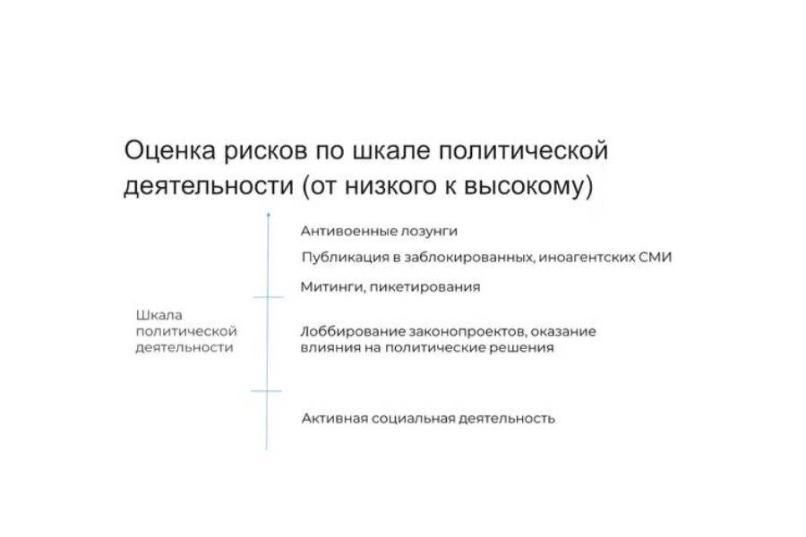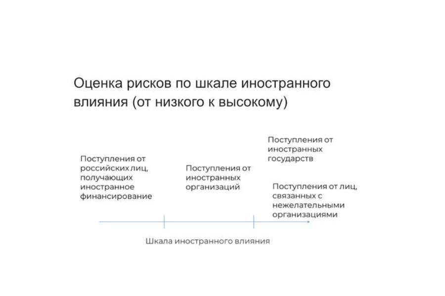 - риск признания иностранным агентом (требуется одновременное наличие иностранного финансирования/влияния и осуществление определенных видов деятельности);