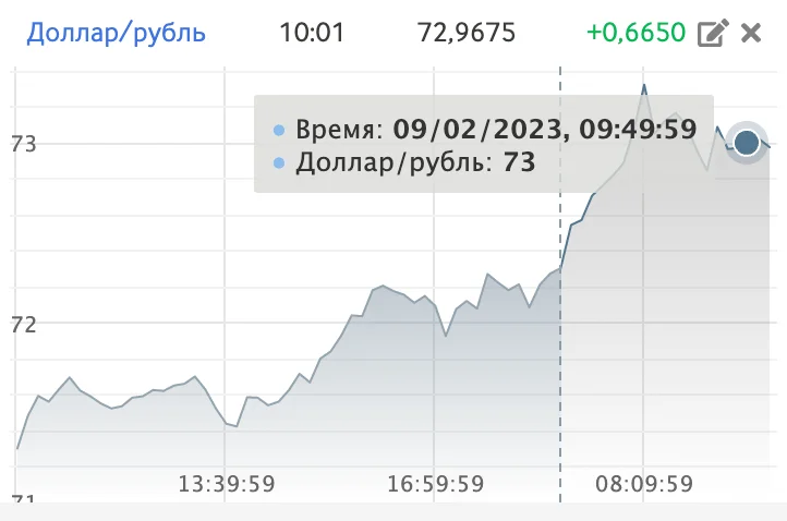 Курс доллара на Мосбирже превысил 73 рубля впервые с апреля 2022 года