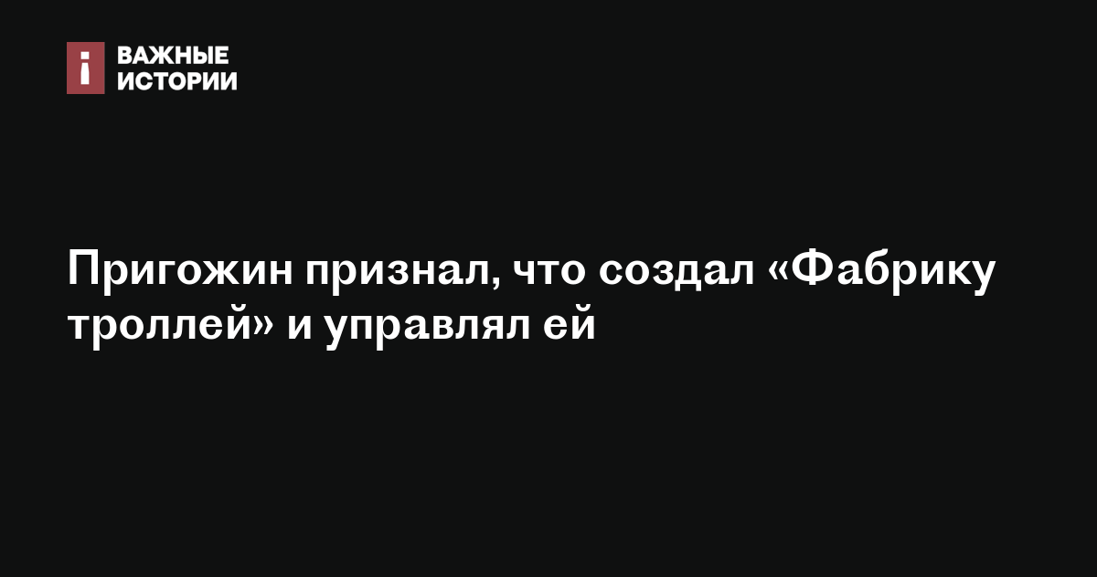 Российский бизнесмен и основатель ЧВК Вагнера Евгений Пригожин заявил, что он придумал, создал и длительное время управлял «Агентством интернет-исследований», известном также как «Фабрика троллей». Пригожин сообщил об этом в ответ на запрос немецкого издания Spiegel.