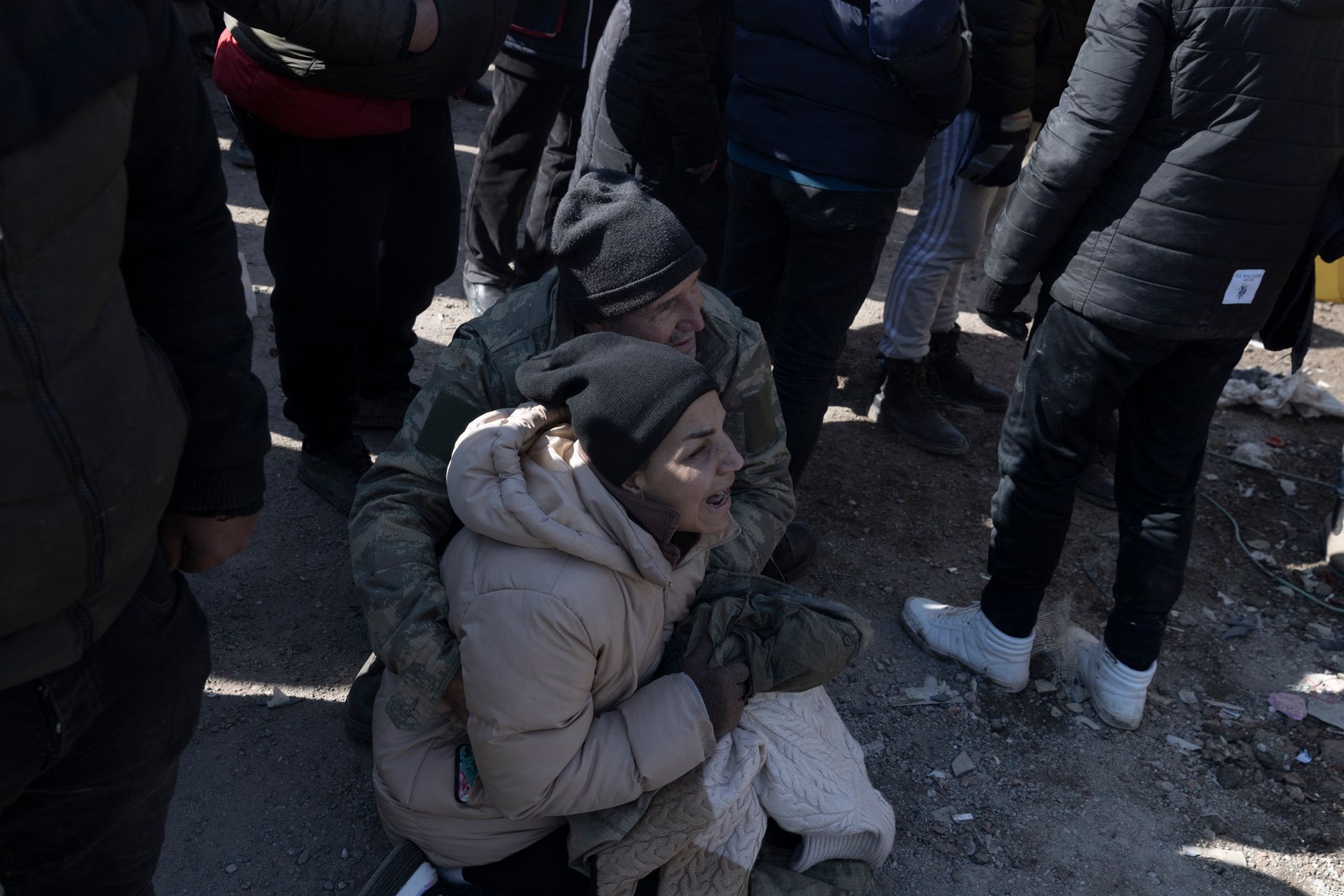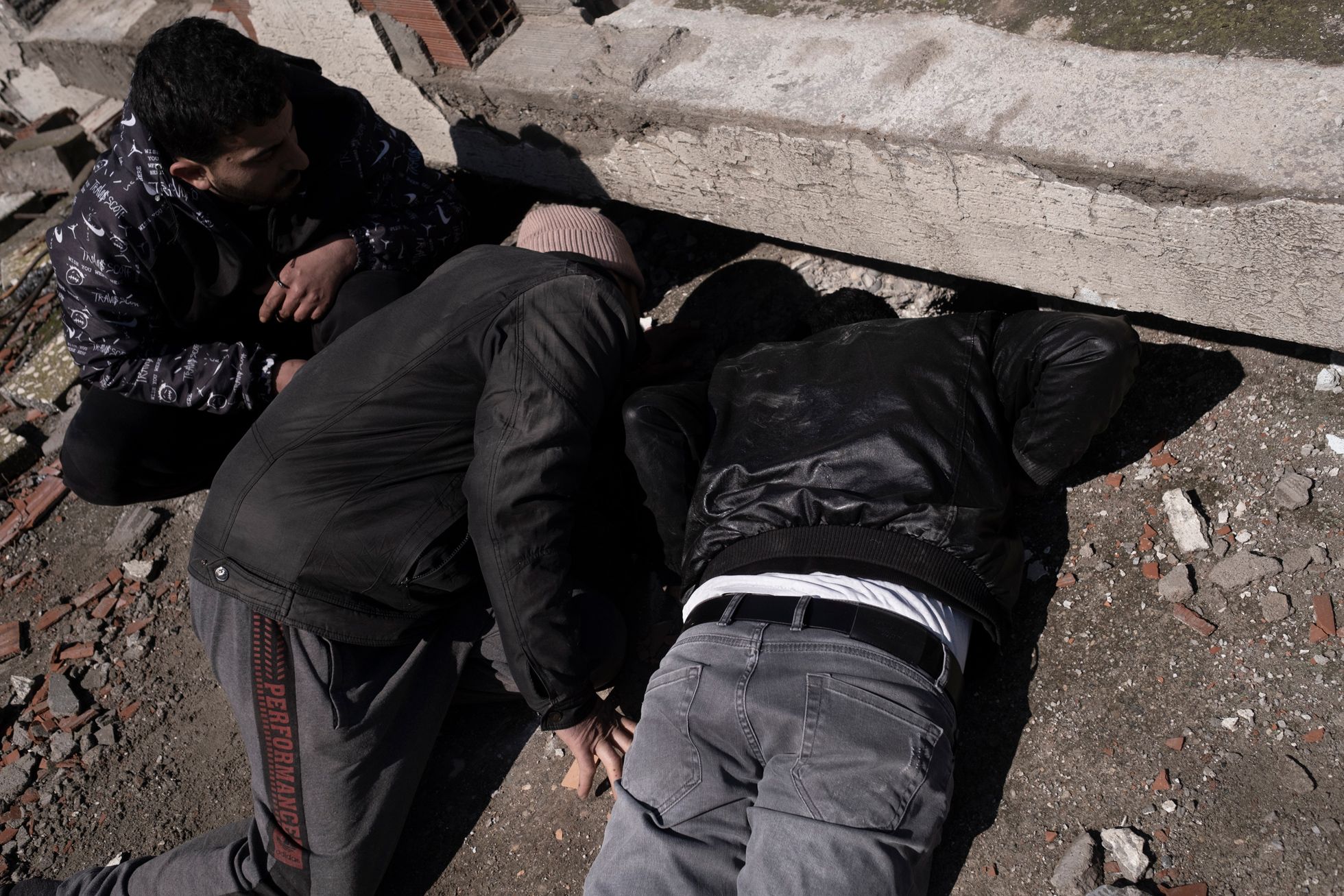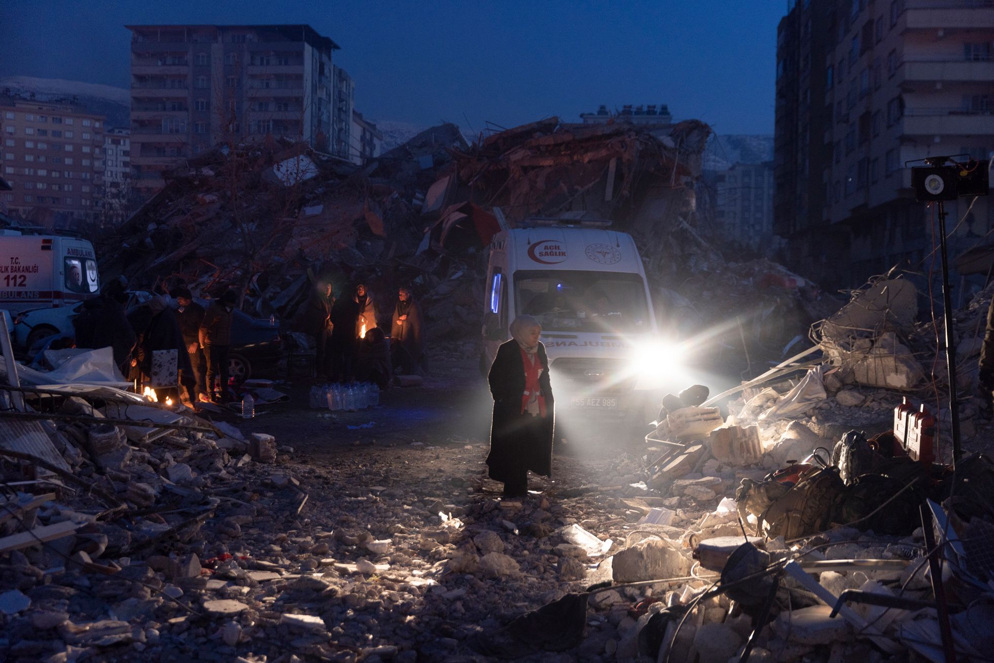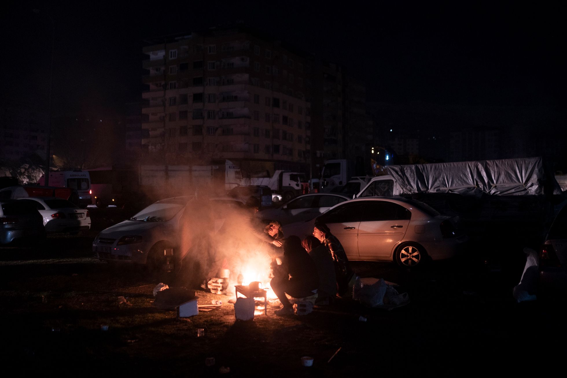 Дальше я поехал в Кахраманмараш — город, который был почти полностью разрушен вторым землетрясением, произошедшим примерно в час дня (первые толчки были около четырех часов утра 6 февраля, — прим. «Медузы»).Я приехал часа в два ночи. Люди жгут костры. Луна очень низко. Как будто цивилизации тут и не было. Какой-то апокалипсис.Я ходил между развалинами и время от времени грелся с местными у костров.Груды обломков вместо домов. В здания не зайти — можно только забраться на них, как на горы.Вся дорога до Кахраманмараша была в разломах — таких больших, что казалось, колеса машины точно в них застрянут.Экскаваторы работают круглые сутки — ищут выживших. В какой-то момент спасатели услышали из-под завалов стуки — там были мужчина и женщина. Их вытаскивали около восьми часов — я все это время там простоял. Обоих удалось спасти, но у мужчины в ноге застрял железный прут, и врачам пришлось прямо на месте лазером ампутировать ему ногу. Вытянули в итоге обоих, но их закрыли одеялами: они были в очень плохом состоянии. Их лиц я так и не увидел.С рассветом в полуразрушенные здания вокруг стали приходить родственники тех, кто мог быть все еще жив под завалами.Начался крик: люди переживали, что чьих-то родственников достают, а чьих-то — нет. Спасатели пытались объяснить, что если начать разгребать один дом с разных сторон, то он может осесть и всех засыпать.Но многие не понимали — начались драки, обмороки, проклятия и плач.Жители сами ходили по развалинам: вслушивались в стуки, кричали в дыры, звали своих близких.Были и те, кто просто обреченно сидел. Потому что больше нет дома: еще вчера ты что-то планировал — а сегодня ничего не осталось.