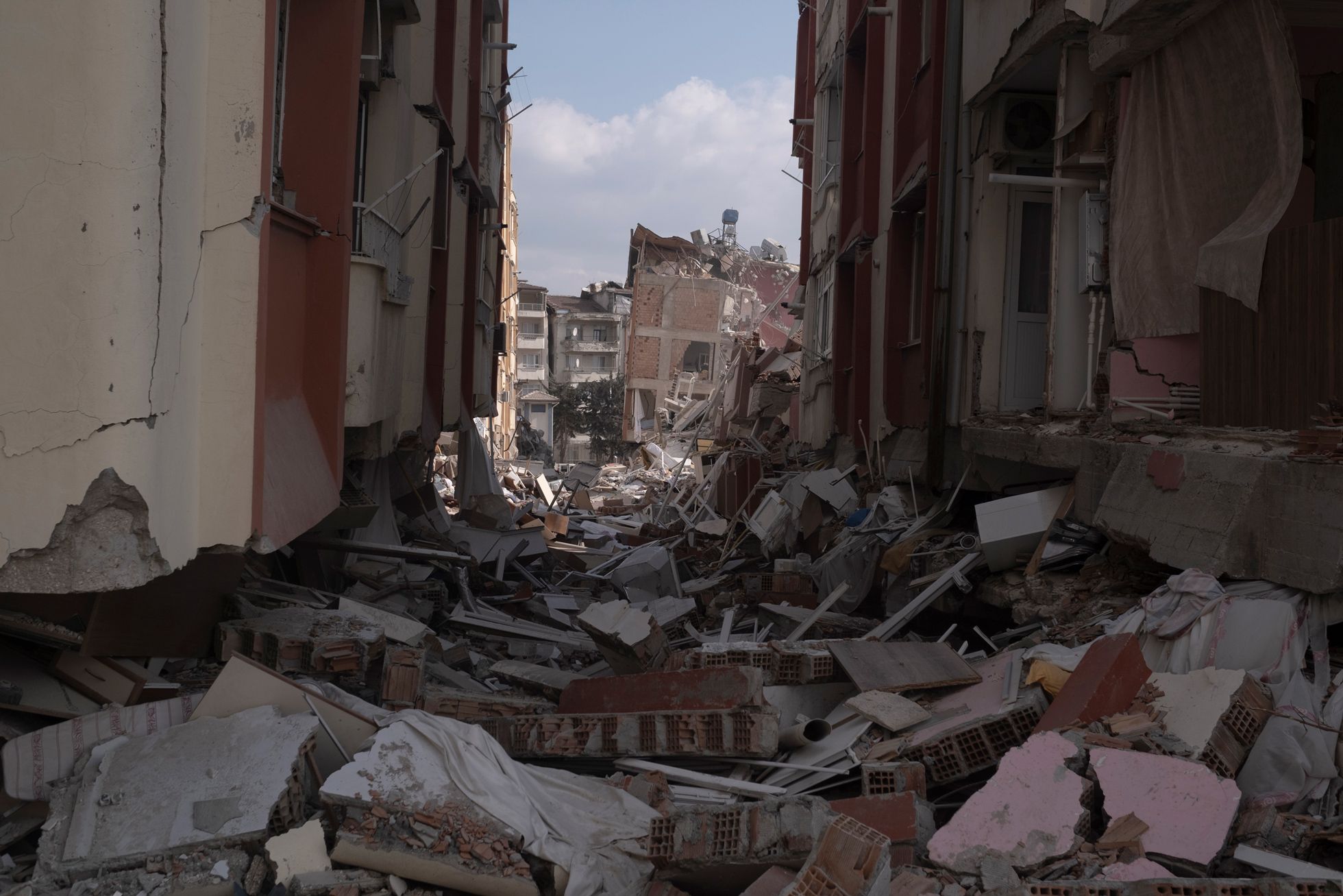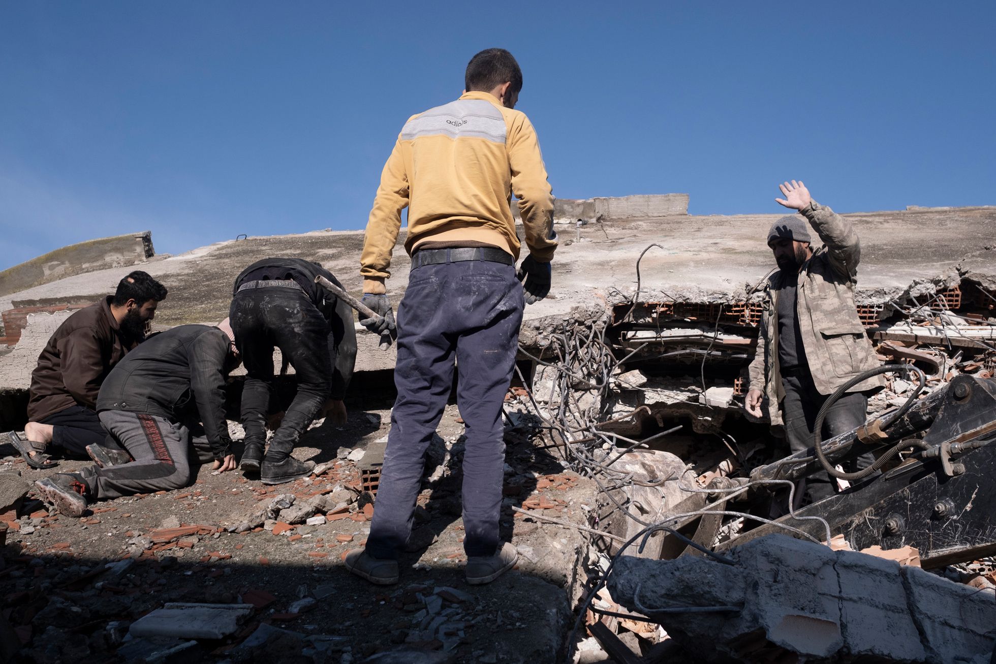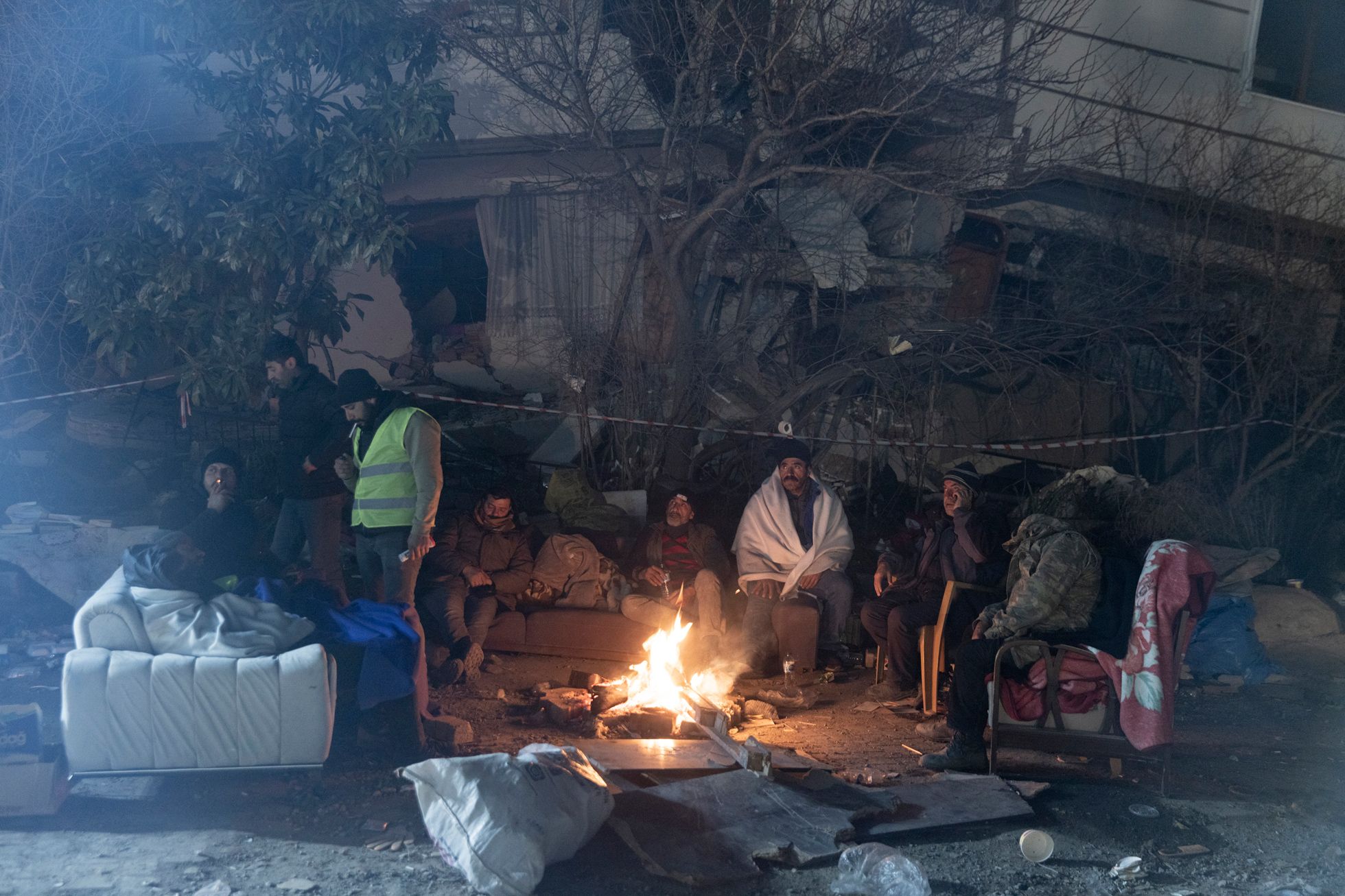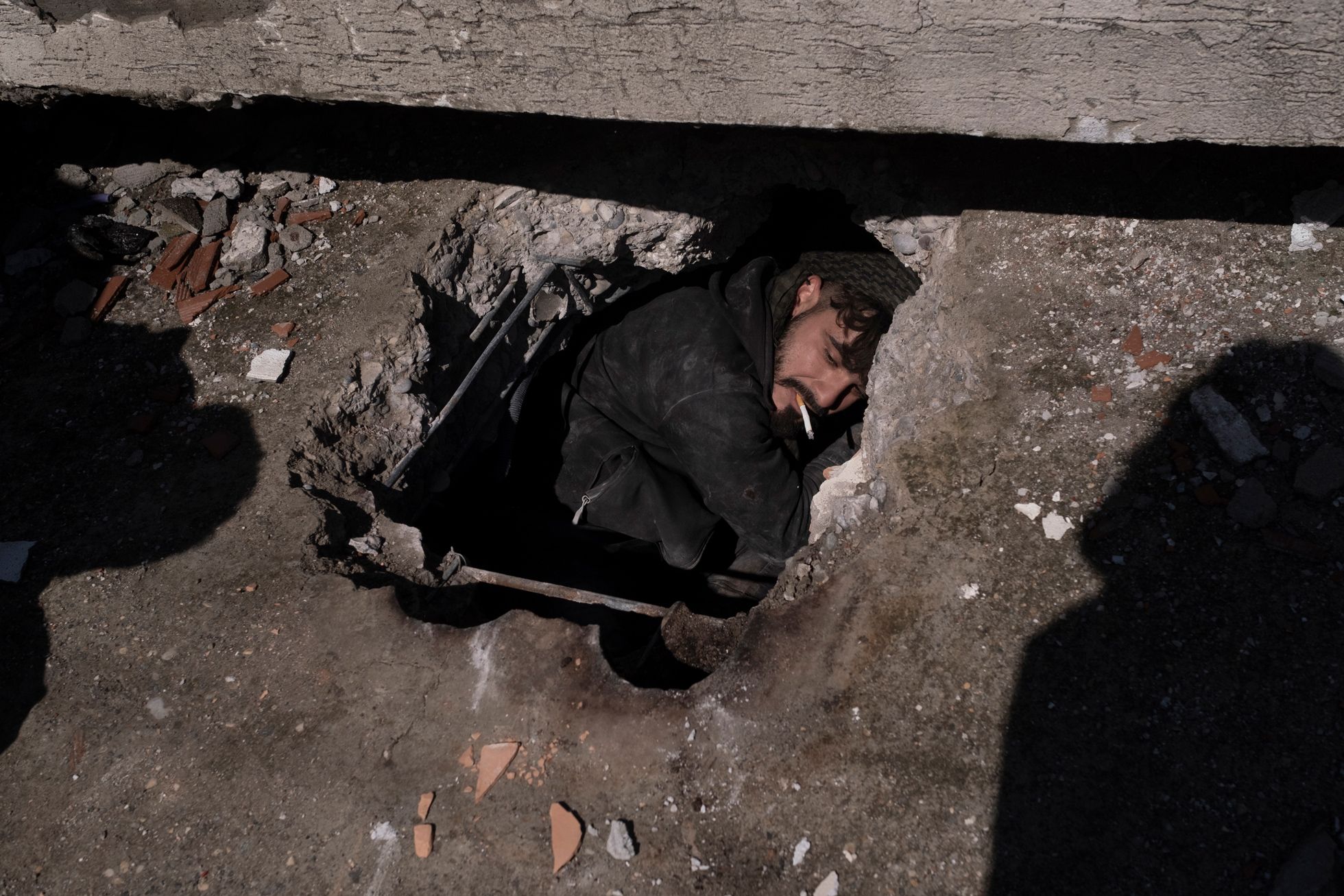 Дальше я поехал в Кахраманмараш — город, который был почти полностью разрушен вторым землетрясением, произошедшим примерно в час дня (первые толчки были около четырех часов утра 6 февраля, — прим. «Медузы»).Я приехал часа в два ночи. Люди жгут костры. Луна очень низко. Как будто цивилизации тут и не было. Какой-то апокалипсис.Я ходил между развалинами и время от времени грелся с местными у костров.Груды обломков вместо домов. В здания не зайти — можно только забраться на них, как на горы.Вся дорога до Кахраманмараша была в разломах — таких больших, что казалось, колеса машины точно в них застрянут.Экскаваторы работают круглые сутки — ищут выживших. В какой-то момент спасатели услышали из-под завалов стуки — там были мужчина и женщина. Их вытаскивали около восьми часов — я все это время там простоял. Обоих удалось спасти, но у мужчины в ноге застрял железный прут, и врачам пришлось прямо на месте лазером ампутировать ему ногу. Вытянули в итоге обоих, но их закрыли одеялами: они были в очень плохом состоянии. Их лиц я так и не увидел.С рассветом в полуразрушенные здания вокруг стали приходить родственники тех, кто мог быть все еще жив под завалами.Начался крик: люди переживали, что чьих-то родственников достают, а чьих-то — нет. Спасатели пытались объяснить, что если начать разгребать один дом с разных сторон, то он может осесть и всех засыпать.Но многие не понимали — начались драки, обмороки, проклятия и плач.Жители сами ходили по развалинам: вслушивались в стуки, кричали в дыры, звали своих близких.Были и те, кто просто обреченно сидел. Потому что больше нет дома: еще вчера ты что-то планировал — а сегодня ничего не осталось.