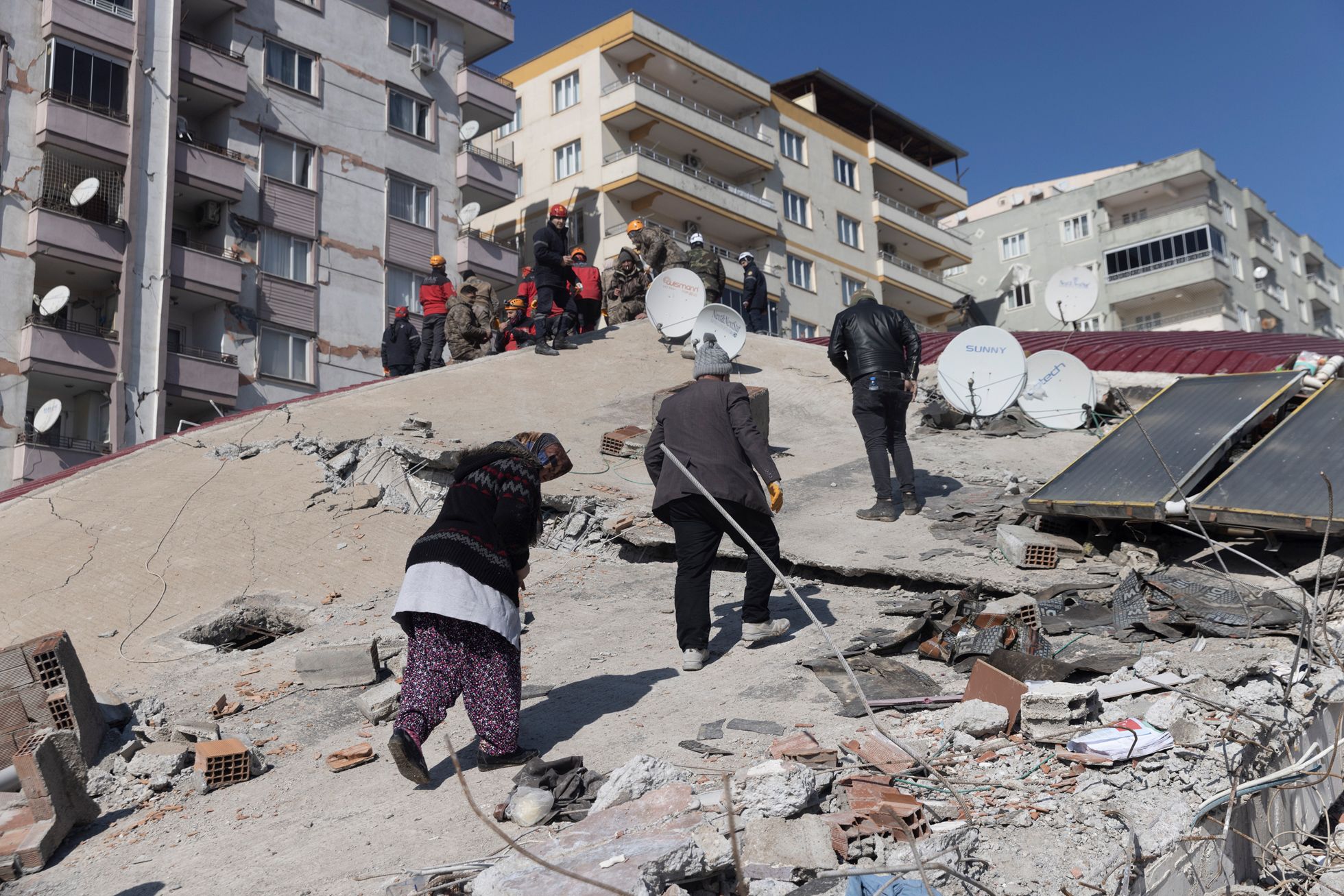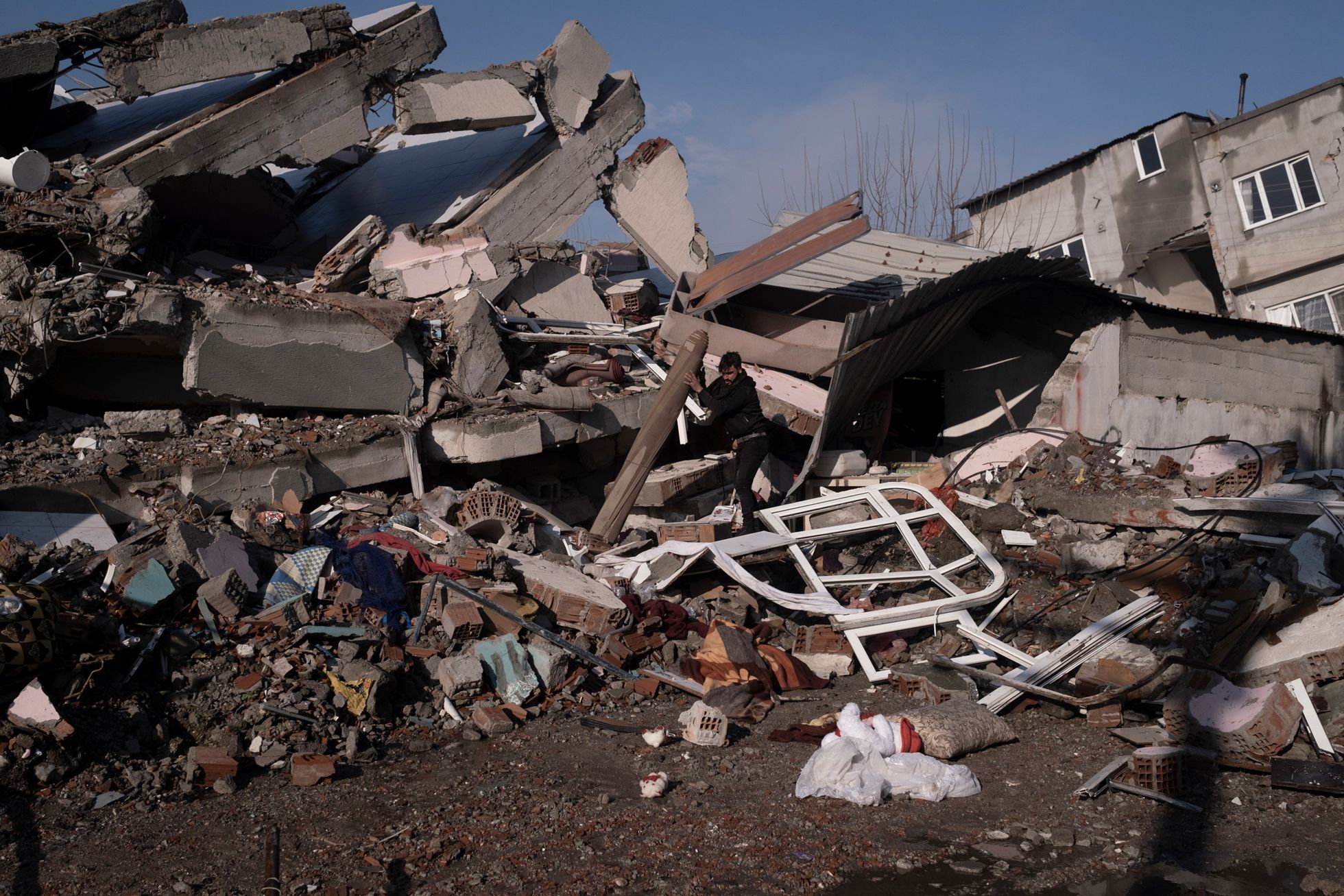 В Турции 6 февраля произошло самое сильное землетрясение с 1939 года. По последним данным, погибли почти 30 тысяч человек, также известно о более пяти тысячах погибших в соседней Сирии. Землетрясение привело к колоссальным разрушениям в юго-восточных провинциях Турции — власти сообщили, что придется сносить и отстраивать заново целые населенные пункты. По просьбе «Медузы» фотограф Сергей Строителев отправился из Мерсина в наиболее пострадавшие от землетрясения города — Османие, Кахраманмараш, Газиантеп и Антакию. Мы публикуем подробный фоторепортаж из этих мест, а также рассказ Сергея Строителева о том, как в Турции разбирают завалы и ищут людей.