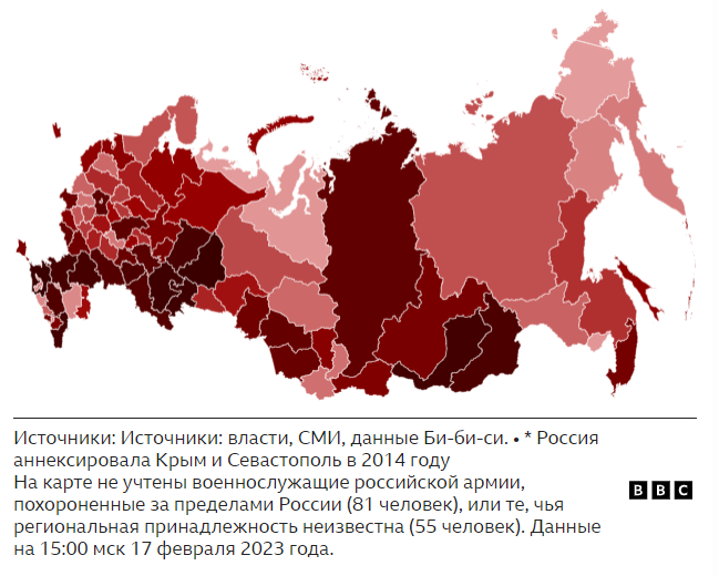 Подтвержденные потери начали существенно расти еще с середины декабря. На протяжении всего 2022 года российские источники каждую неделю обычно сообщали примерно о 250-300 погибших. В январе эти цифры удвоились.