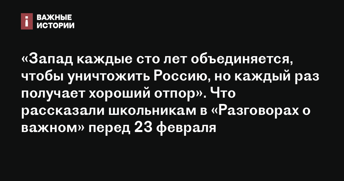 «Запад каждые сто лет объединяется, чтобы уничтожить Россию, но каждый раз получает хороший отпор». Что рассказали школьникам в «Разговорах о важном» перед 23 февраля