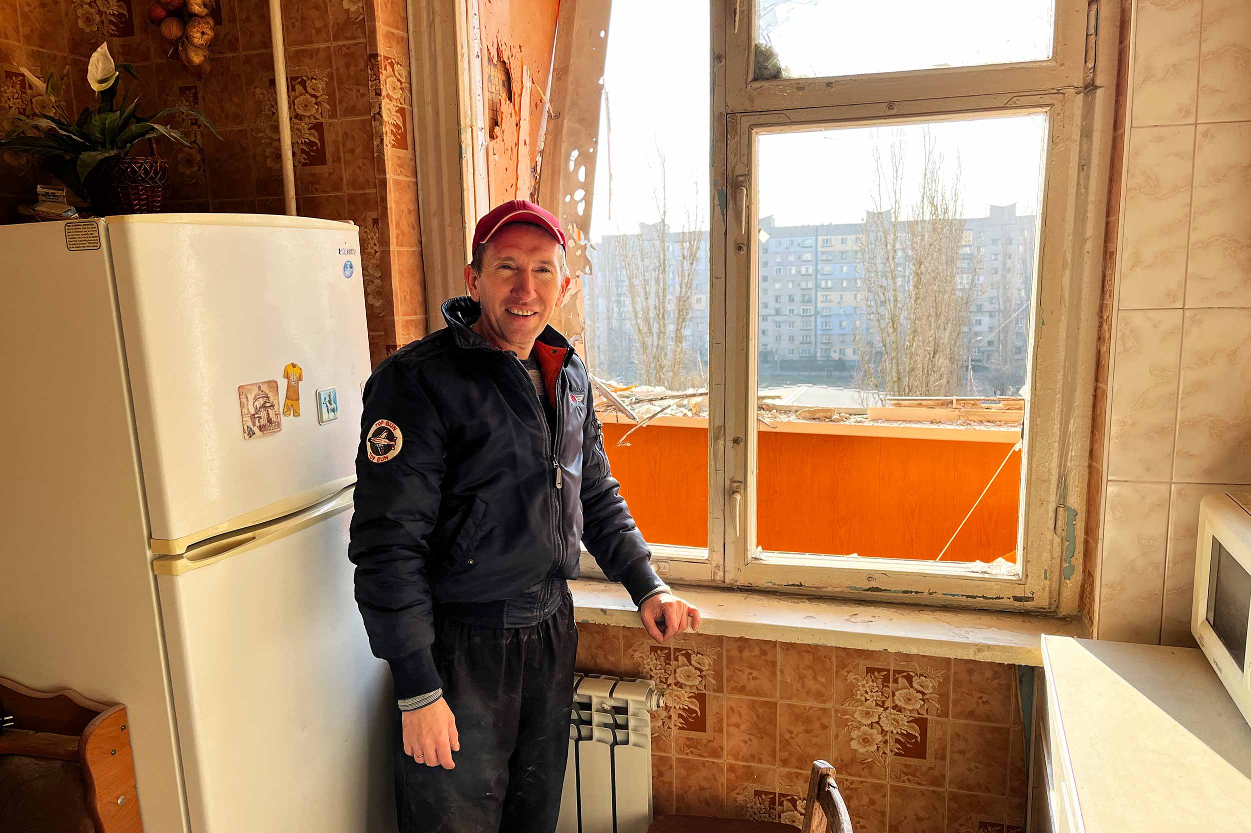 47-летний Вячеслав, рабочий верфи, жил на Острове, но к декабрю обстрелы стали обычным делом, и по настоянию дочери они переехали в Николаев. Фото: Энтони Борден/IWPR