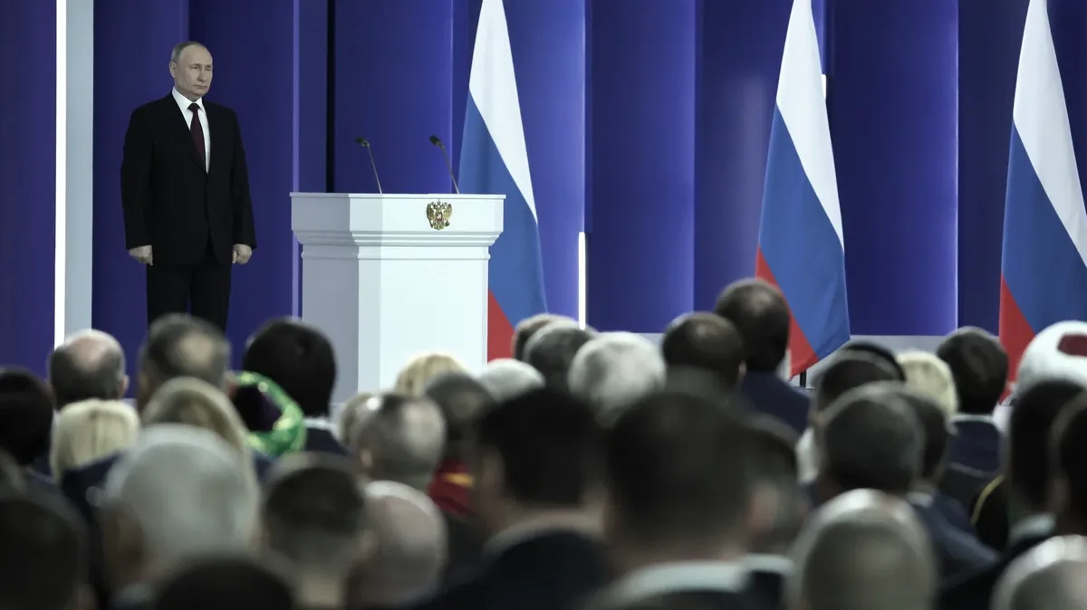 выступление Путина — это было послание советского руководителя советскому народу. Это совершенно классический жанр длительного, с разбивкой по отраслям выступления лидера Коммунистической партии Советского Союза на условном XXIII съезде КПСС.