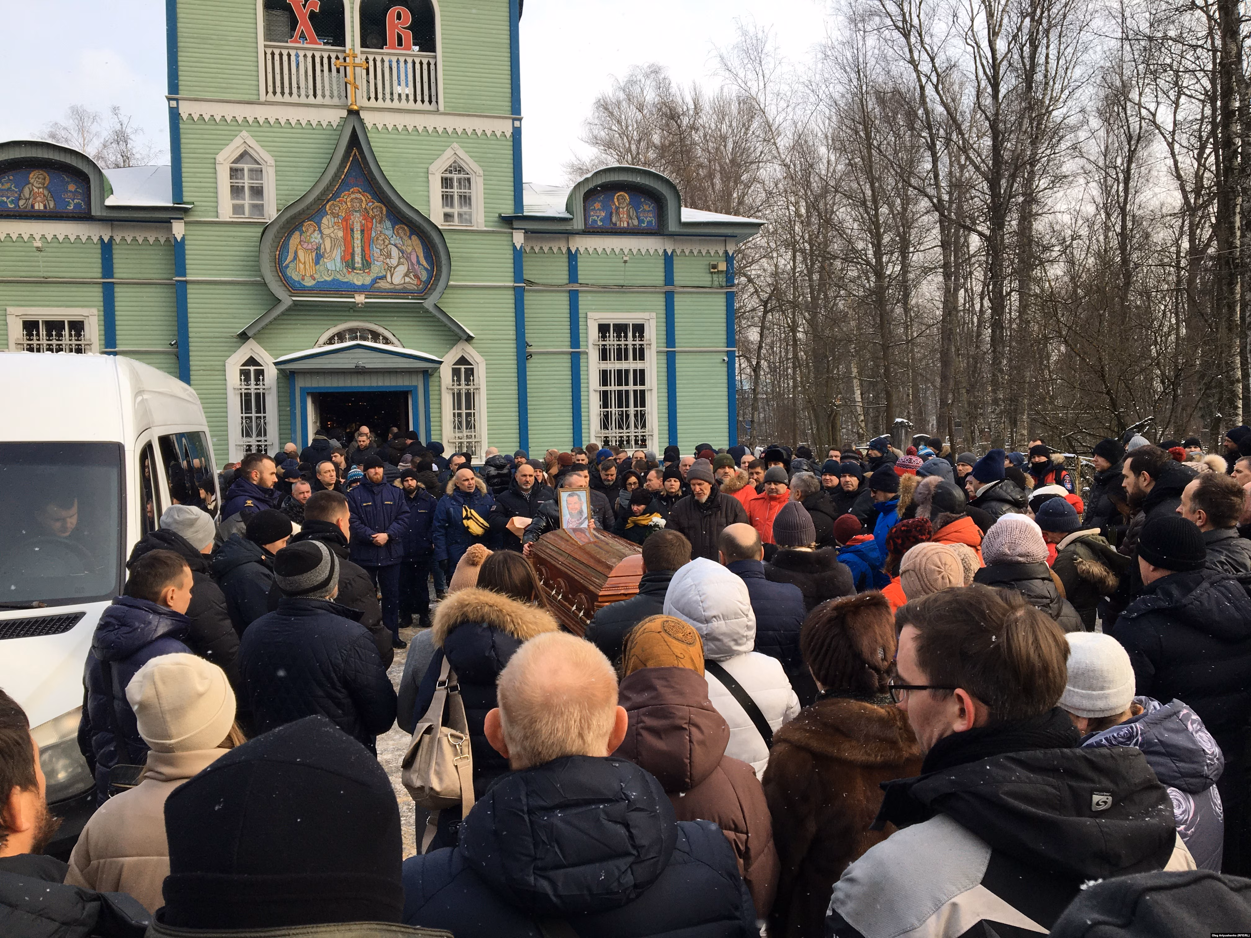 14 февраля объединение фанатов петербургского "Зенита" "Ландскрона" сообщило о гибели соратника-ультрас, пожарного Андрея Рахова по прозвищу Арни (он же – Огнеборец). Он воевал как доброволец в "ДНР" и подорвался на мине под Угледаром вместе со своим коллегой Андреем Ковалишиным, который, в отличие от Рахова, даже не успел подписать контракт. Корреспондент Север.Реалии побывал на прощании, когда тела доставили в Петербург.