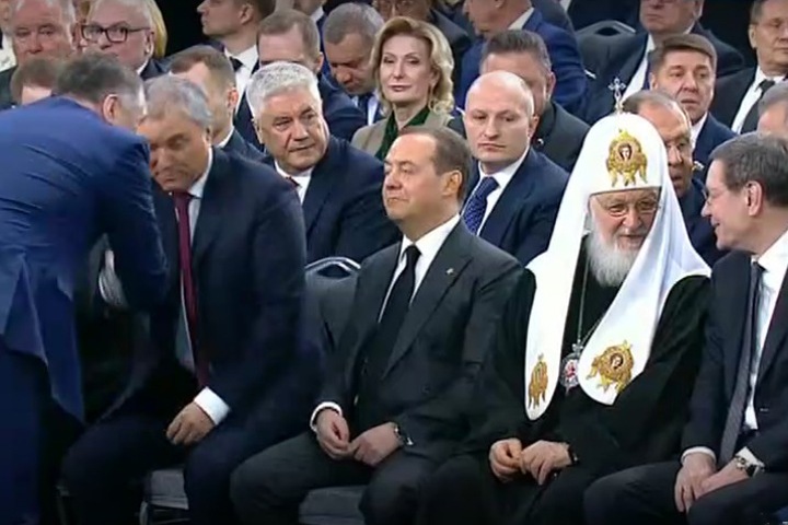 *16:07* Путин начал послание. Он опять сказал, что в 2014 году в Украине пришел к власти «неонацсистский режим», при это он тут же добавил, что с тех пор Кремль вел с ними переговоры до начала «спецоперации».