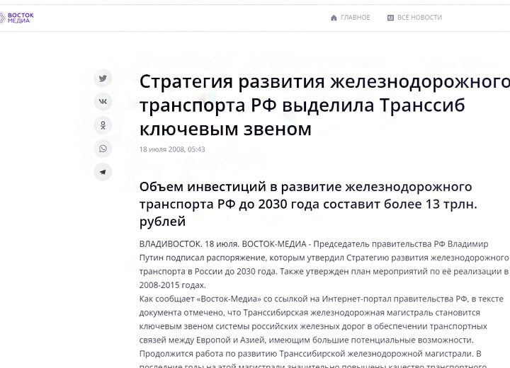 *17:50* Путин снова предложил "наращивать мощности Транссиба и БАМа" и сказал, что "нужно развивать Сибирь".