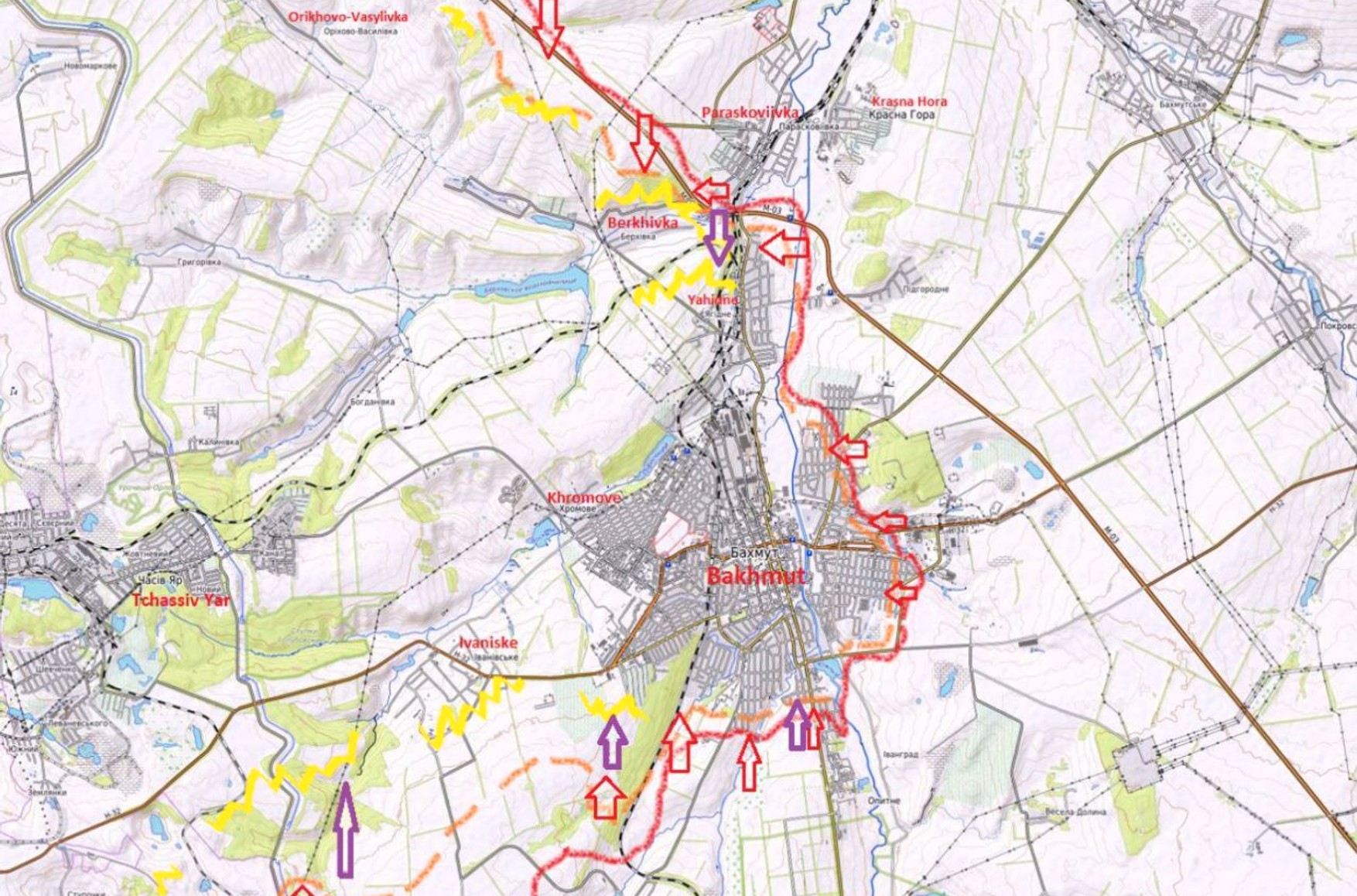 Подразделения ЧВК Вагнера в это время подходят к промзоне на севере Бахмута, пишет пропагандист, эксперт «Центра военно-политической журналистики» Борис Рожин. Там располагается Бахмутский завод по обработке цветных металлов, по словам Рожина, штурм по сложности может сравниться с боями за «Азовсталь», а ВСУ вряд ли сдадут завод без боя и будут использовать его как крепость.