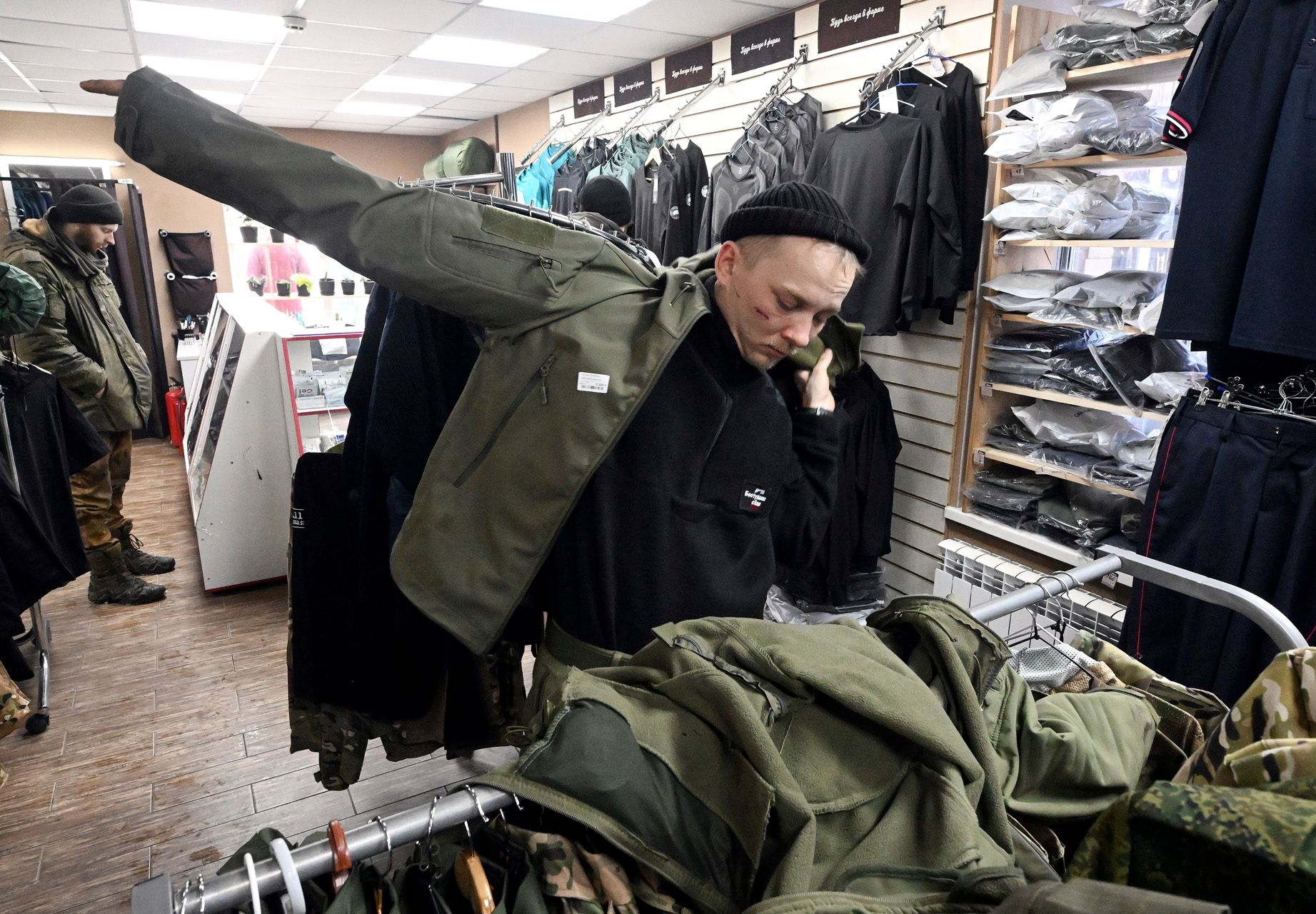 Анатолий Жданов / Коммерсант / SIPA USA / Vida Press Российская военная техника на улицах Донецка — города, который с апреля 2014 года находится под контролем самопровозглашенной ДНР и России, а в результате «референдума» 30 сентября 2022-го был аннексирован Россией. Донецк часто подвергается обстрелам ВСУ — последний был в ночь на 23 февраля. По данным местных властей, за два часа украинские военные выпустили по городу около 30 снарядов. О погибших и раненых не сообщалось. В ВСУ этот обстрел не комментировалиАнатолий Жданов / Коммерсант / SIPA USA / Vida Press Житель Донецка примеряет куртку в военторге «Спецконтора»Анатолий Жданов / Коммерсант / SIPA USA / Vida Press Швея за работой в магазине «Спецконтора»Анатолий Жданов / Коммерсант / SIPA USA / Vida Press Гражданский автомобиль с литерами Z на одной из улиц ДонецкаАнатолий Жданов / Коммерсант / SIPA USA / Vida Press Забор со следами пуль