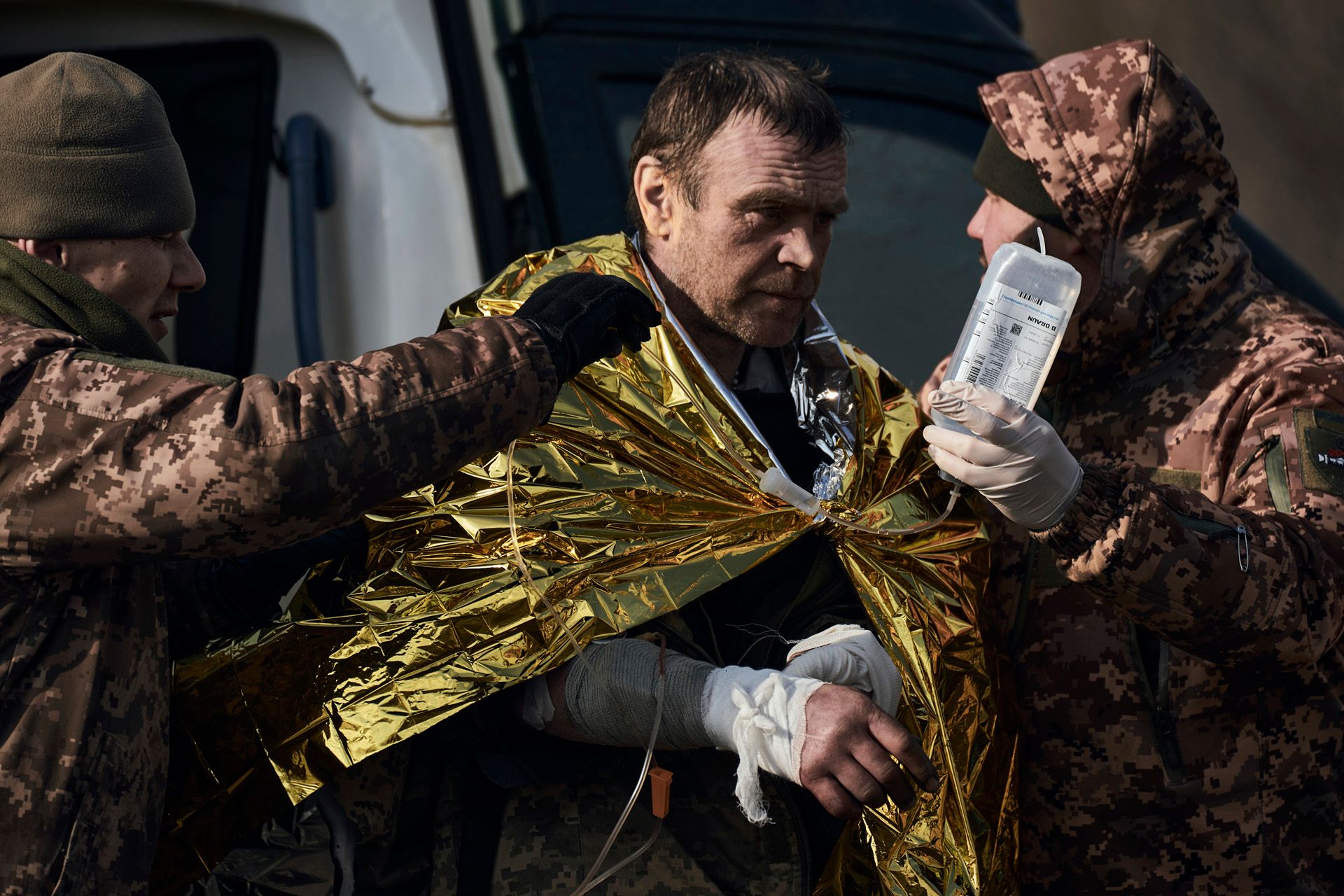 Libkos / AP / Scanpix / LETA Украинский военный в укрытии на передовойAlex Babenko / Reuters / Scanpix / LETA Боец ВСУ патрулирует улицы БахмутаLibkos / AP / Scanpix / LETA Украинские военные помогают раненому товарищуJohn Moore / Getty Images Украинский военный врач из 72-й механизированной бригады делает перевязку раненому солдату в госпитале рядом с линией фронтаLibkos / AP / Scanpix / LETA Военные врачи ВСУ несут на носилках раненного в бою солдатаLibkos / AP / Scanpix / LETA Украинские военные медики укрывают тела погибших бойцов ВСУ