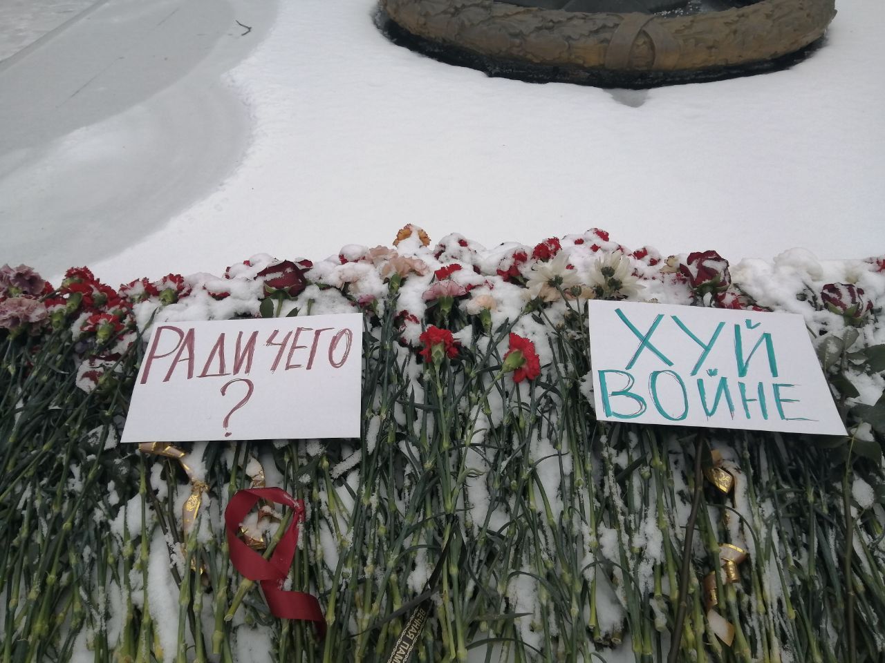 Во многих городах России в годовщину полномасштабного вторжения в Украину проходят акции. Люди возлагают цветы к памятникам, вывешивают антивоенные плакаты, проводят одиночные пикеты.