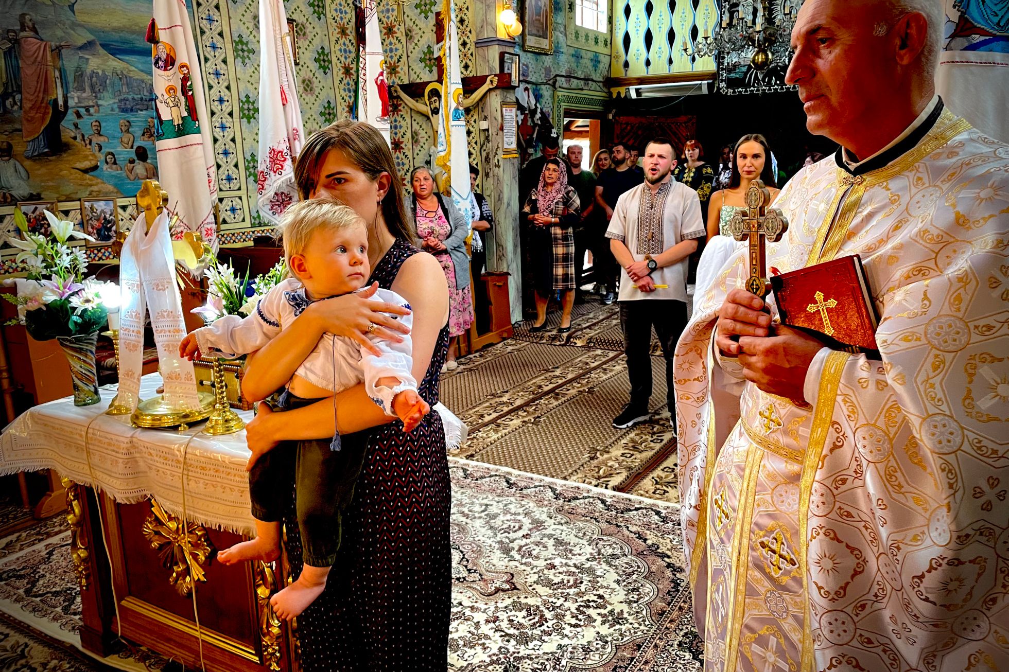 Беспросветную тьму освещают мирные эпизоды — иначе как идиллическими их не назовешь. Тихое течение речки, на берегу которой друзья вспоминают, как решили отправиться на эту войну. Пейзаж с затянувшимся на долгие часы застольем, склонившие головы подсолнухи. Торжественный ритуал в деревенской церкви, ангельского вида младенец. Изобразительно все это укладывается в канон народного наивного искусства, как и памятник защитникам свободы Украины в той же деревне или икона с крещением казаков на церковной стене.