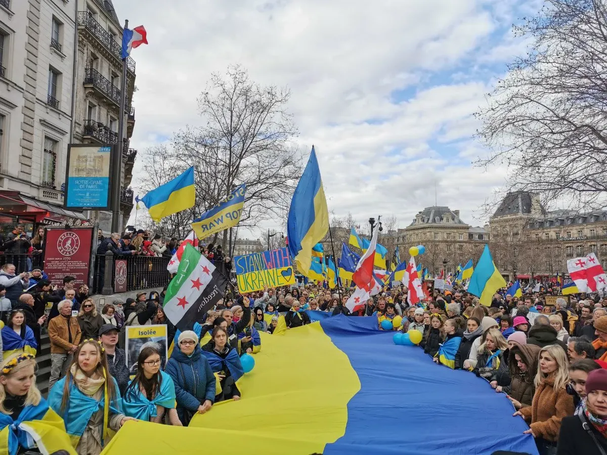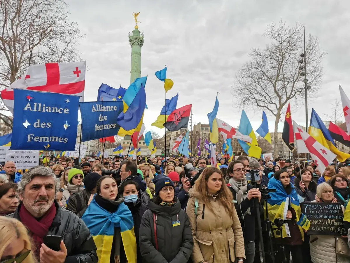 В Париже перед митингующими выступили посол Украины во Франции Вадим Омельченко и лауреат Нобелевской премии мира Александра Матвийчук.
