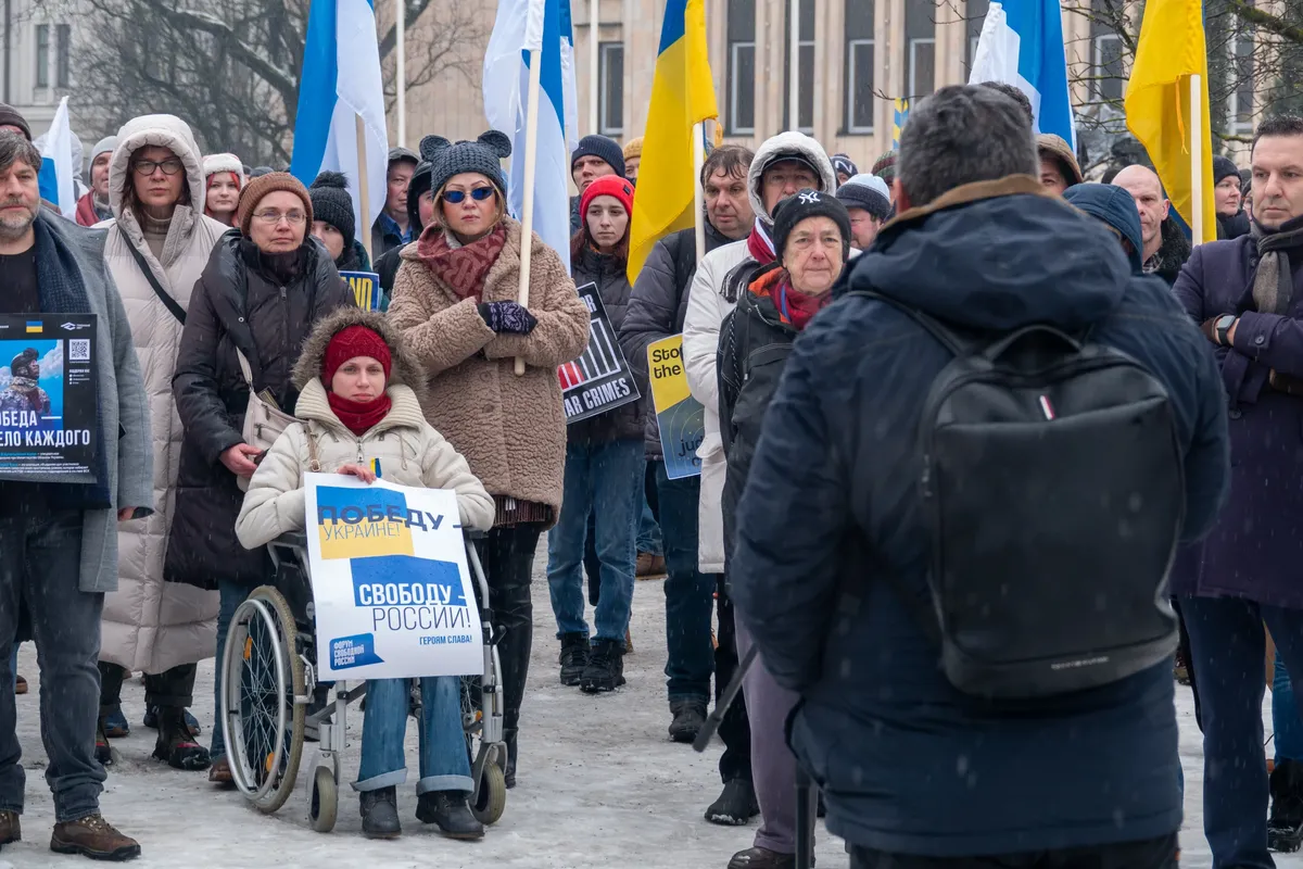 В Риге напротив посольства РФ прошел митинг «Победу — Украине! Свободу — России!» в рамках всемирной протестной акции россиян. На нее, как передает корреспондент «Новой-Европа», вышли приблизительно 200 человек. Перед собравшимися выступили Дмитрий Орешкин, Максим Кузахметов и другие.