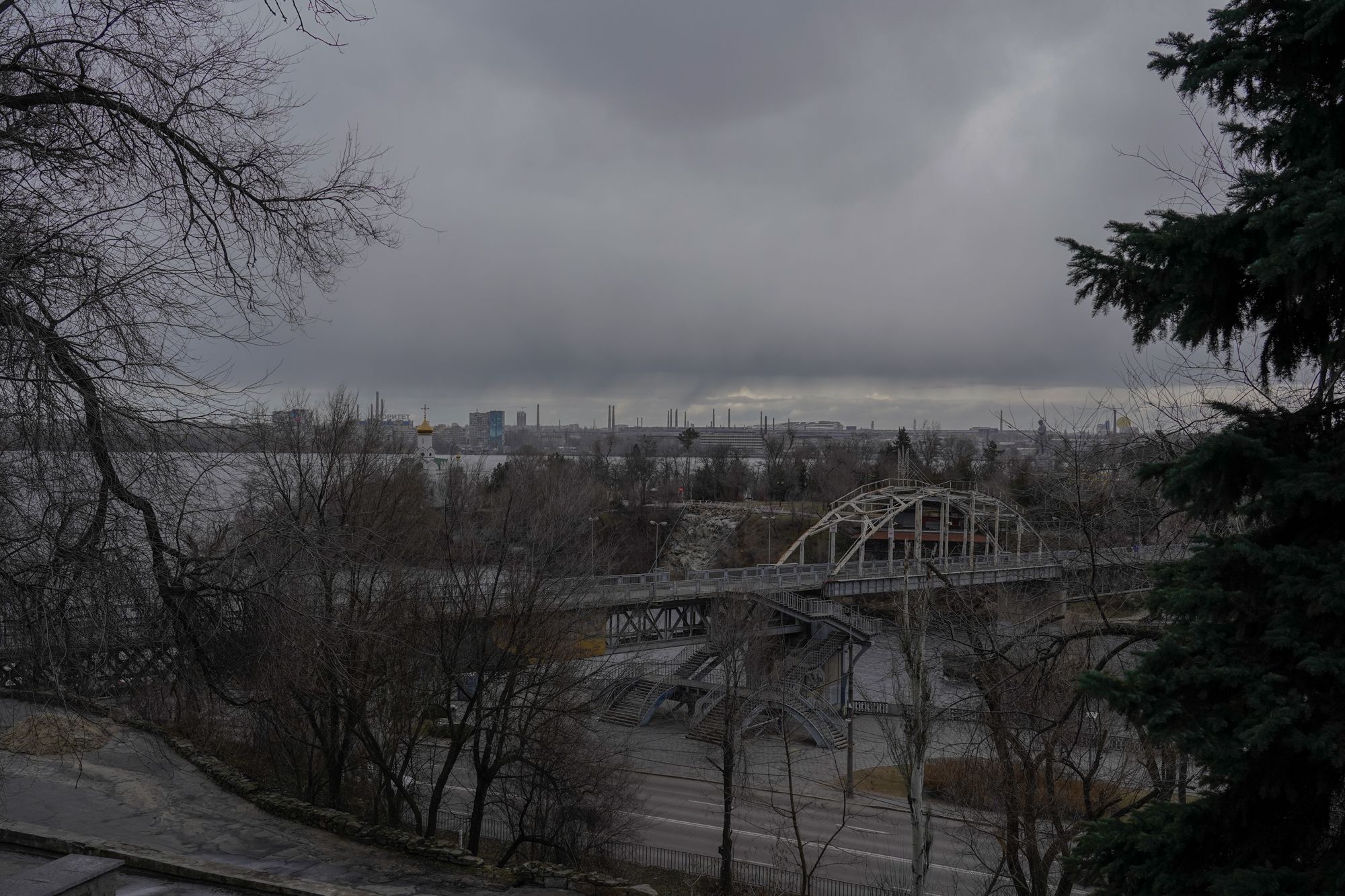 Спустя 12 месяцев после начала полномасштабного российского вторжения к востоку от реки Днепр идут одни из самых ожесточенных сражений. Исторические пороги реки, где гранитные скалы разделяют поток на рукава, огибают около 60 островков и текут прямо в Запорожскую область, где Каховское водохранилище — по сообщениям СМИ, его сейчас осушают российские войска — охлаждает крупнейшую в Европе атомную электростанцию и обеспечивает местных жителей питьевой водой. Еще ниже по течению река проходит через Никополь — место, которое на прошлой неделе подверглось тяжелым артиллерийским ударам. Пока беженцы стекаются в Днепр из восточных регионов Украины, местные солдаты и волонтеры возвращаются обратно, зная, что их город на линии фронта; железнодорожный вокзал Днепр-Главный кишит людьми в камуфляже, включая мужчину на костылях с ногой в толстом вязаном носке, который осторожно переступает по льду.