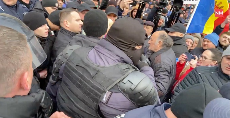 В столицы Молдовы Кишиневе прошла массовая акция протеста, организованная пророссийской партией "Шор". Митингующие перекрывали дорогу, так как полиция долгое время не пропускала их к месту проведения акции, между правоохранителями и протестующими начались потасовки, пишет NewsMaker. Есть информация о задержаниях.