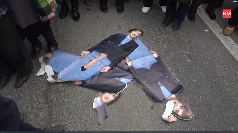 После этого Цуркану начал скандировать, что "головой об асфальт" ("cu capul de asfalt") в отношении нового премьера Молдовы Дорина Речана, и клич подхватила толпа.