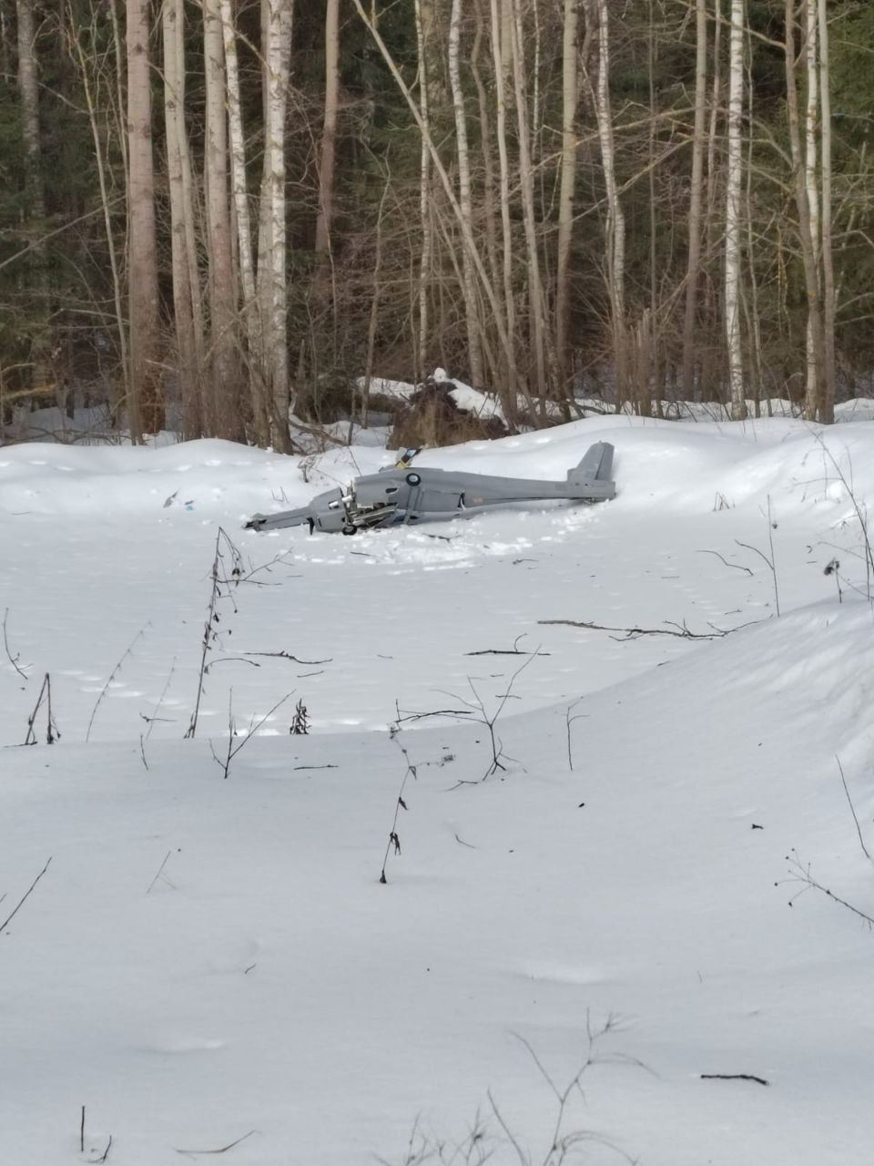 РанееиBazaписали, что это был беспилотник UJ-22 Airborne, которые производит компания «Укрджет». «Наш источник сообщает, что, вероятно, дрон резко потерял высоту (возможно, кончилось топливо), зацепился за деревья и повредил крыло, поэтому и упал», — добавил Shot.