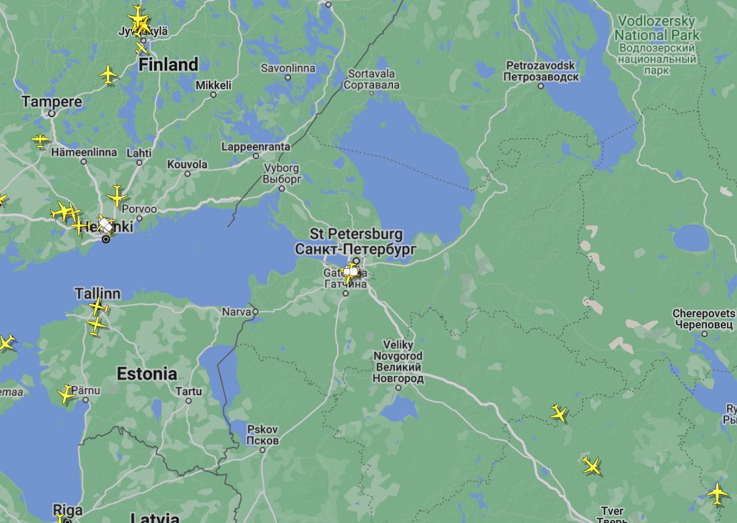Небо над Санкт-Петербургом закрыто для авиарейсов, временно не принимает и не отправляет самолеты аэропорт Пулково. Об этом, в частности, свидетельствуют данные сервиса Flightradar24.