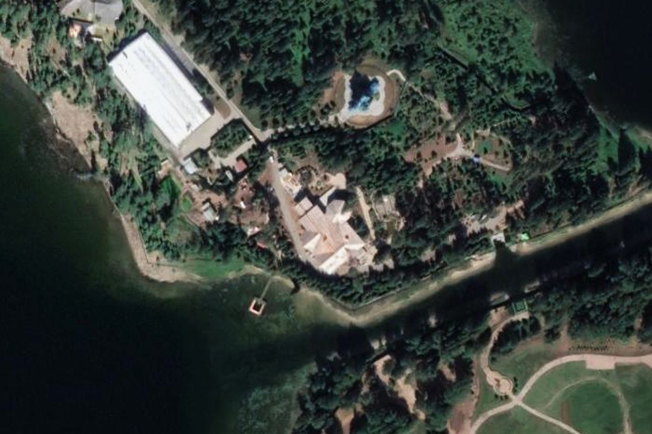 Дом площадью 1200 квадратных метров, судя по спутниковым снимкам, начали строить в 2020 году. Завершилось строительство два года спустя. Как рассказал «Проекту» источник, знакомый с устройством резиденции, ее создавали «специально для Кабаевой». В 2021 году рядом с домом, который находится на берегу канала, был сооружен лодочный причал, с которого можно переплыть на лодке в оформленный в классическом стиле парк, занимающий участок в 28 гектаров.
