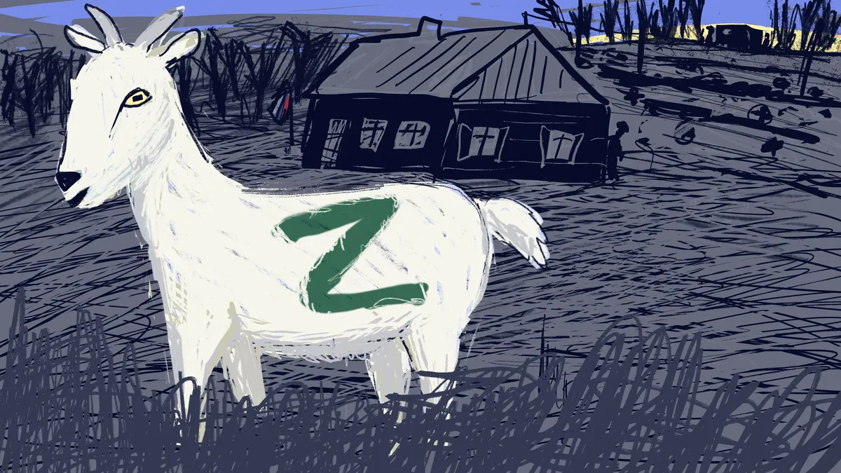 Наблюдательный пункт выглядит так: стоит коза, обычная белая коза, на ней зеленым баллончиком намалевана Z. Рядом оставленная украинская хата, в ней семь бойцов. Сложно описать этих бойцов приличными словами, но я постараюсь: снайпер там такой… в общем, ну, как из меня был бы снайпер. С ним гранатометчик, пулеметчик, еще кто-то. Выглядят как бомжи с вокзала, только вот форму нацепили. Не то пропитые, не то обнюханные — непонятно, кто они вообще. Смотрю, а разницы между ними и той козой вообще не вижу.