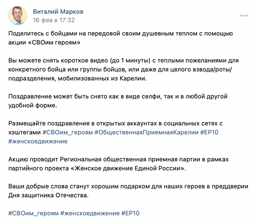 Впрочем, для понимания, медианный среднедушевой доход жителей Карелии в 2021 году составил от силы 27 тыс. руб. в месяц*. И, пока жители Карелии гибнут на бессмысленной путинской войне, Марков зарабатывает, а мобилизованным предлагает отправить на фронт видеопожелания.