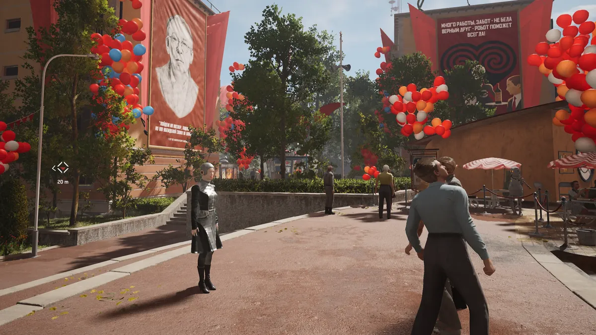 Советская эстетика задает сеттинг игры с первых секунд: в красивейшей сцене герой плывет на катамаране по реке, проходящей через центр идиллического города, под саундтрек «Звездного лета» Аллы Пугачёвой — песни из фильма 1978 года о детстве в пионерлагере. Постепенно мы узнаем, что главный герой игры — агент советской разведки, майор Сергей Нечаев, в роли которого игрок расследует инцидент на предприятии по производству роботов в Казахской ССР: по неизвестным причинам роботы восстали против своих создателей и хозяев.