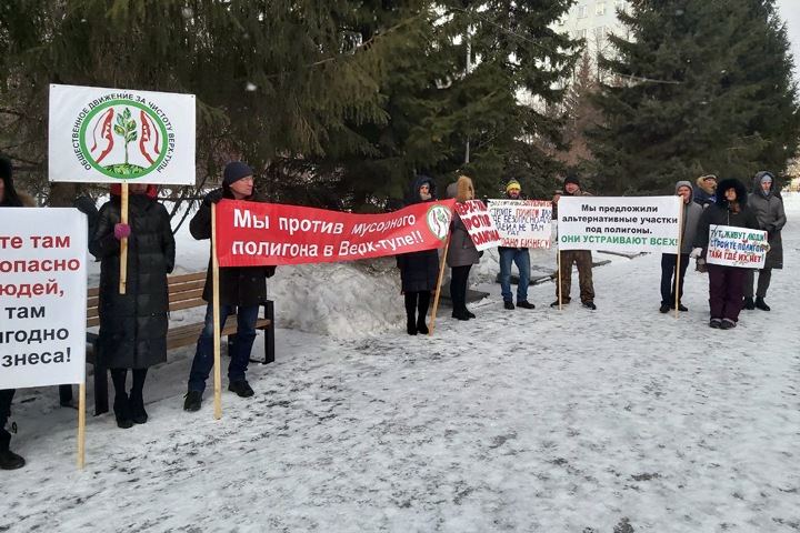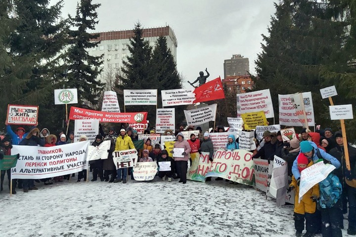 Пикет против строительства мусорных полигонов в Верх-Туле и Плотниково прошел в центре Новосибирска 4 марта. В сквере у театра «Глобус» собралось около 100 человек, сообщил Тайге.инфо председатель экологического движения «Будущее в наших руках» Виталий Гуненко.