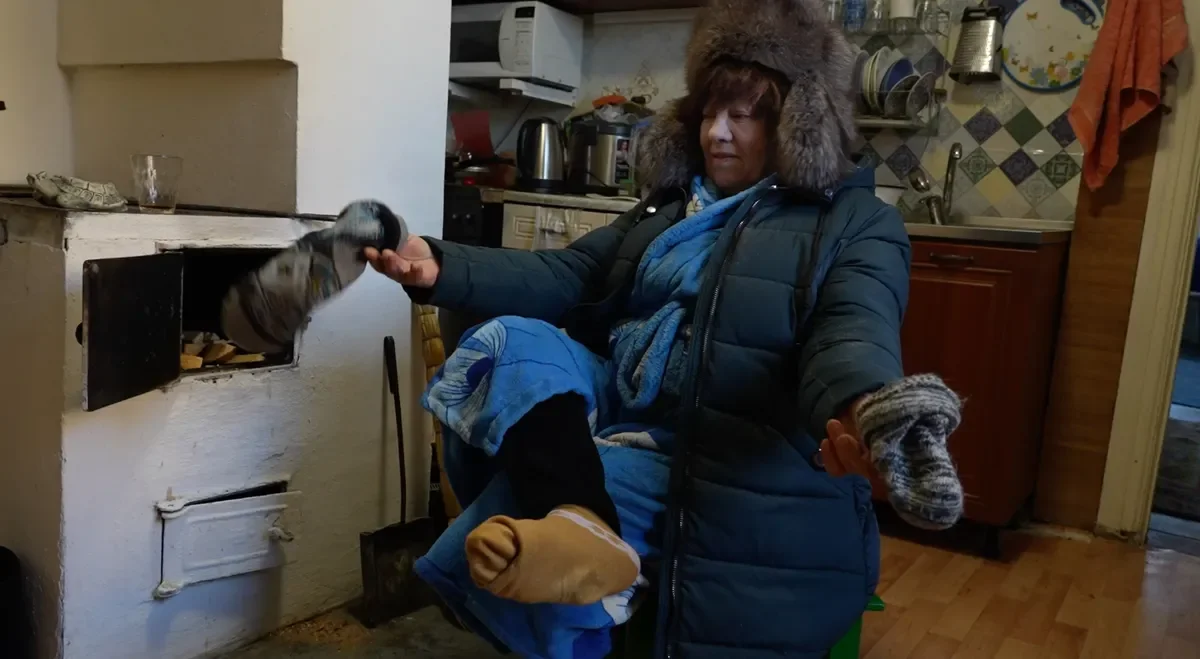 “I have a pension slightly above 10,000 [€124]. Two cubes of sawn boards (the cheapest type of firewood — author’s note) cost 4,000 rubles [€49]. And the temperature at home is always 14-15°C. Because I’m saving wood. I wear felt boots and a warm robe all the time.