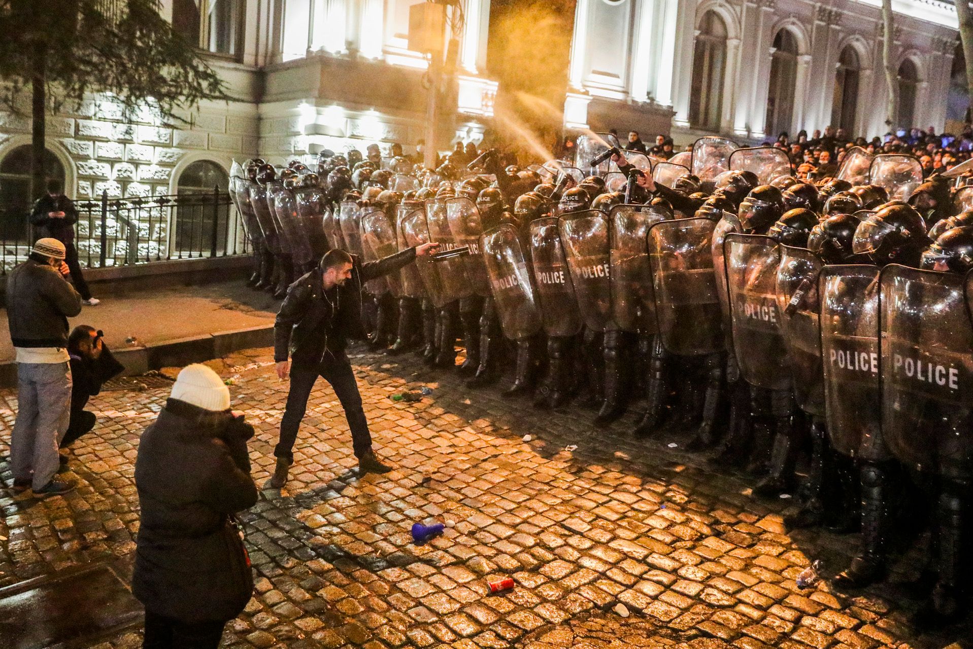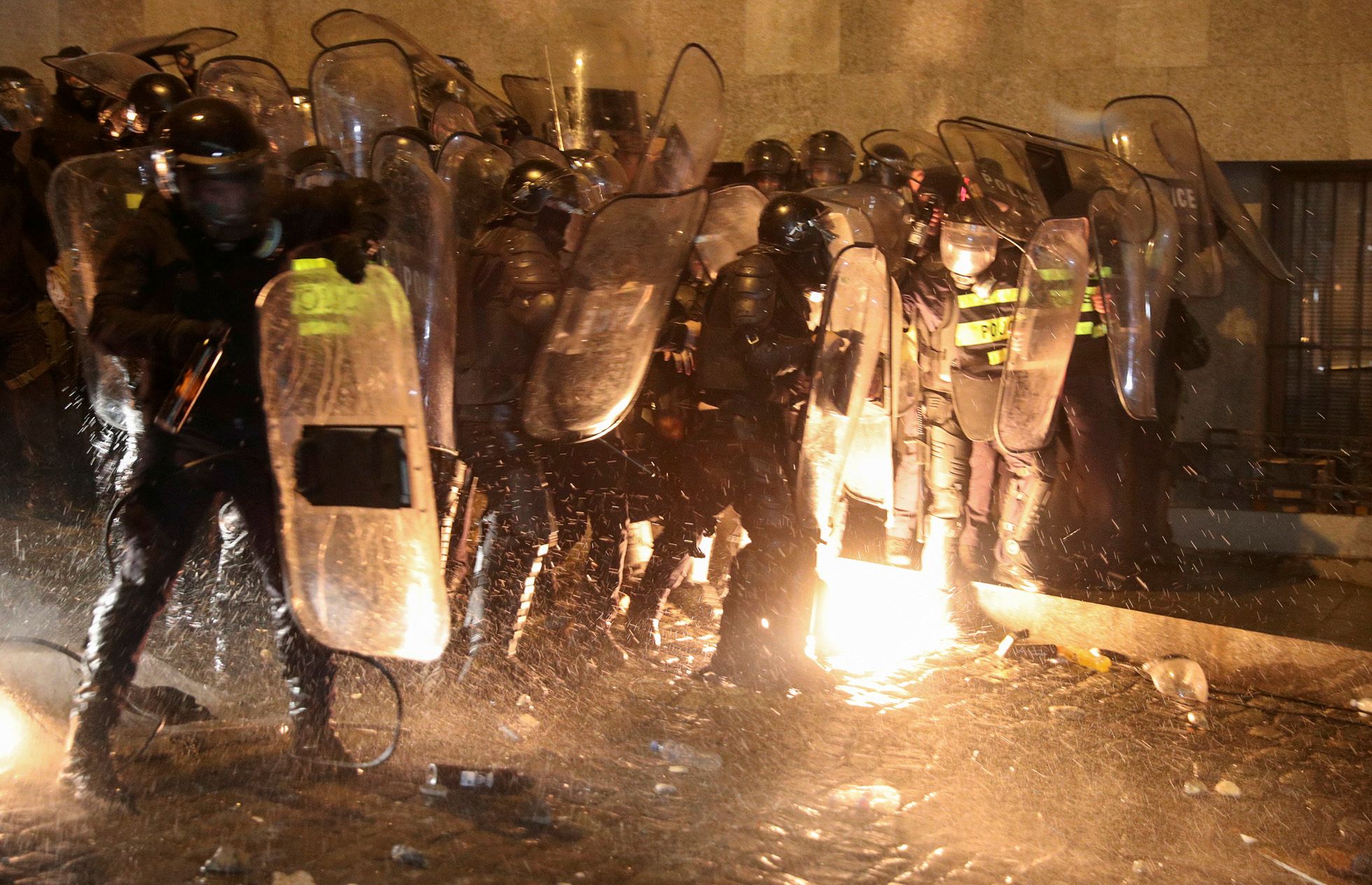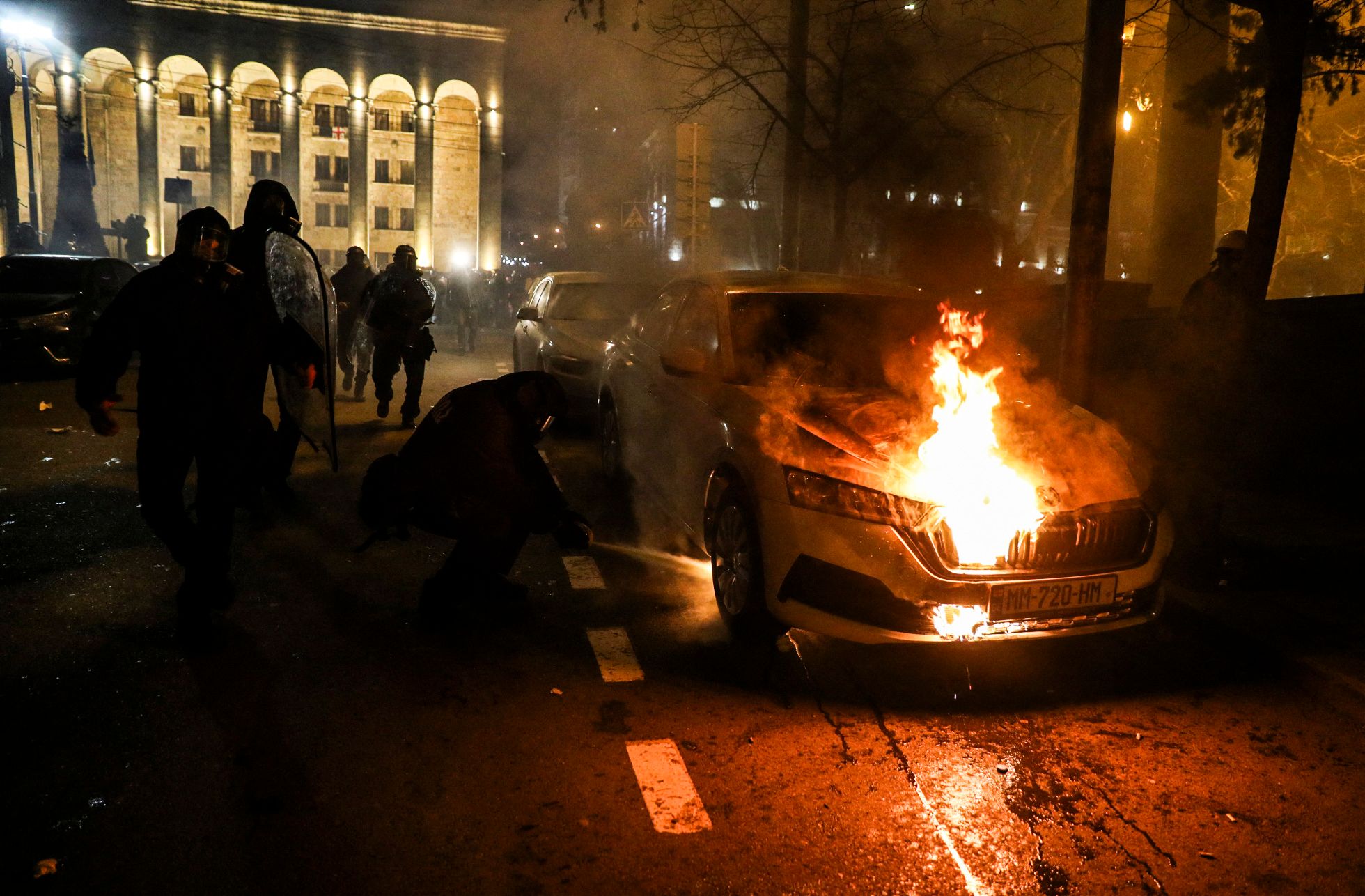 Несколько тысяч человек приняли участие в протестах возле парламента Грузии, который 7 марта принял в первом чтении законопроект об «иностранных агентах». В случае принятия инициативы Грузия может потерять возможность получить статус кандидата в Евросоюз и вступить в НАТО. Протесты у парламента в Тбилиси переросли в столкновения с полицией. Спецназ применил против демонстрантов слезоточивый газ и водометы, протестующие кидали в полицейских бутылки, фаеры и коктейли Молотова. Вечером президент Грузии Саломе Зурабишвили заявила, что поддерживает протестующих. Вот как проходила демонстрация в Тбилиси.