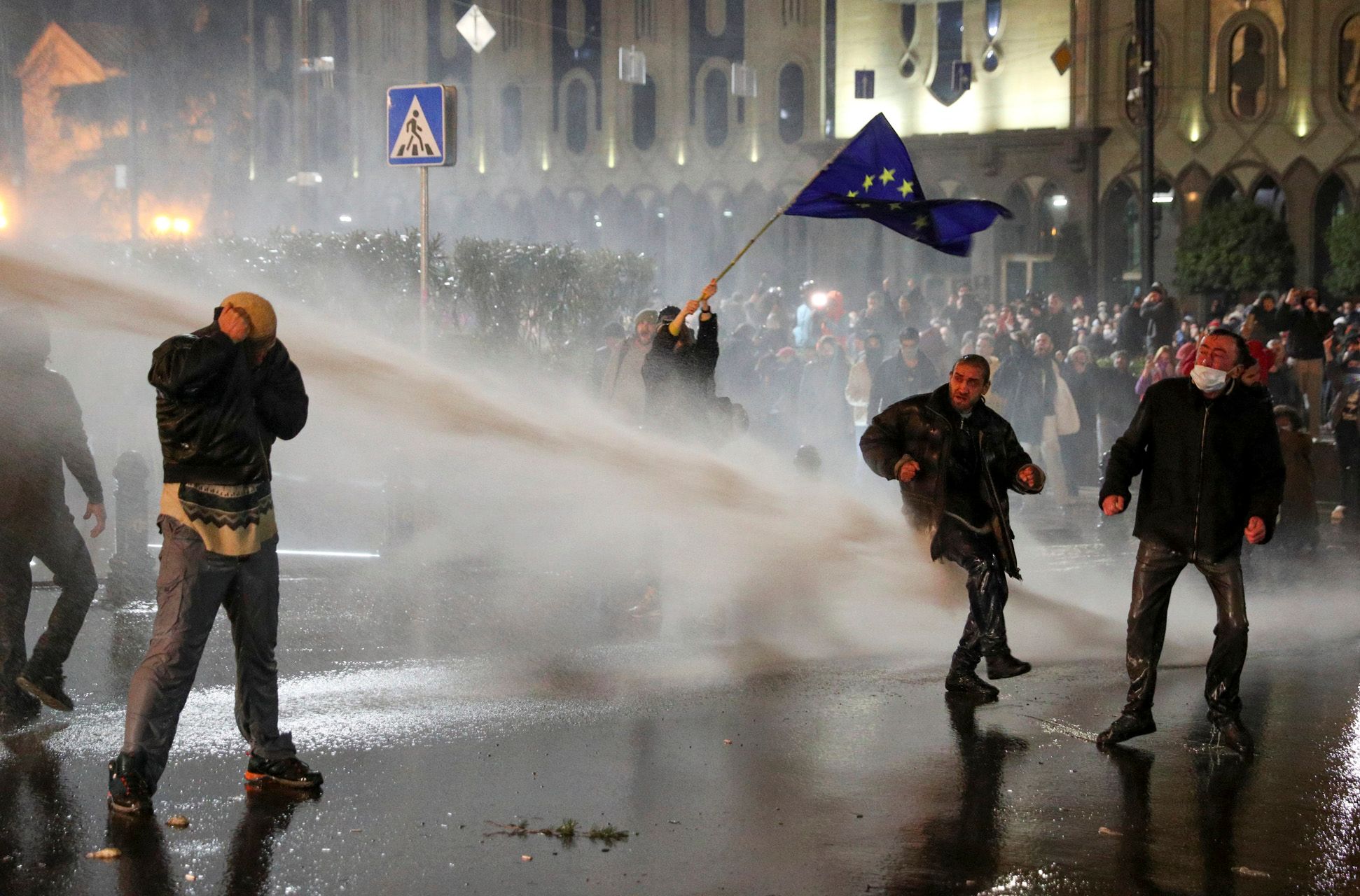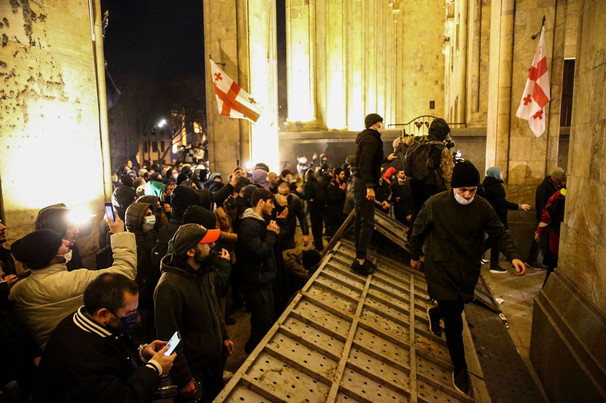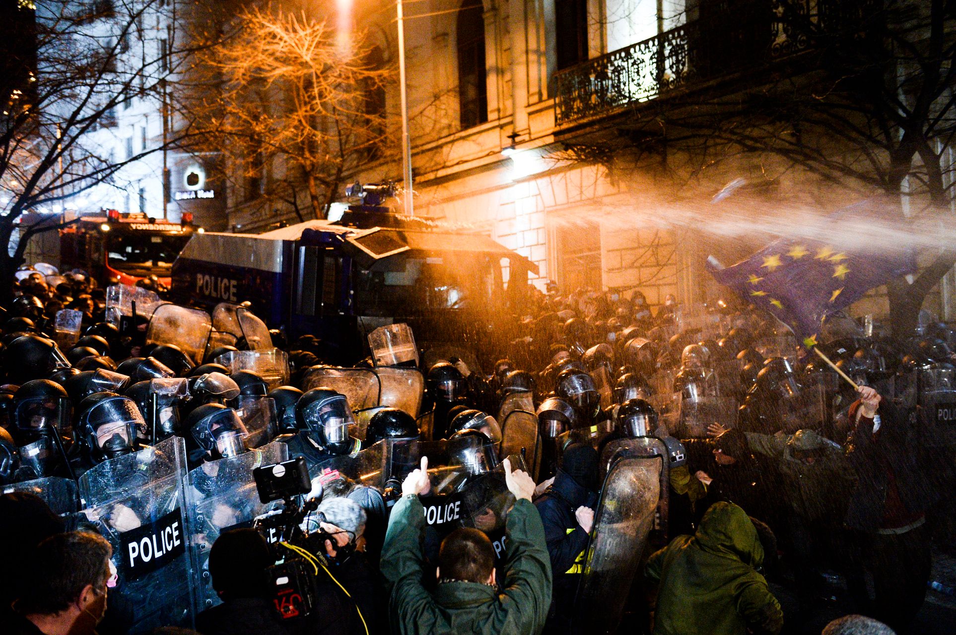 Несколько тысяч человек приняли участие в протестах возле парламента Грузии, который 7 марта принял в первом чтении законопроект об «иностранных агентах». В случае принятия инициативы Грузия может потерять возможность получить статус кандидата в Евросоюз и вступить в НАТО. Протесты у парламента в Тбилиси переросли в столкновения с полицией. Спецназ применил против демонстрантов слезоточивый газ и водометы, протестующие кидали в полицейских бутылки, фаеры и коктейли Молотова. Вечером президент Грузии Саломе Зурабишвили заявила, что поддерживает протестующих. Вот как проходила демонстрация в Тбилиси.