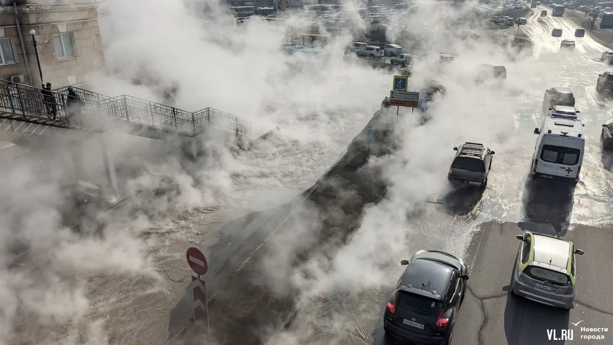 Прорыв, по данным VL.RU, произошел под площадью Луговой. Крупный транспортный узел залило кипятком, видимость там почти нулевая. Вода залила дороги и пешеходные зоны, пишет «РБК Приморье». Люди не могут пройти по тротуарам, машины вынуждены заезжать в лужи, полностью погружая колеса кипяток. Также, как пишет издание, над площадью поднимались клубы плотного пара.
