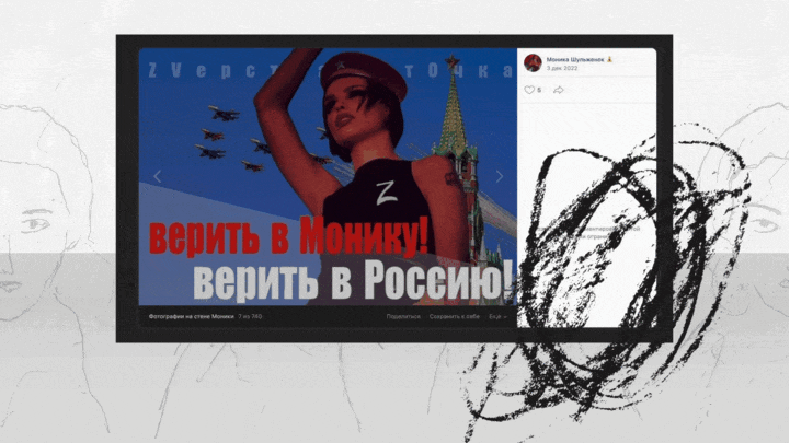 «Тогда мне он показался вполне адекватным, а когда началась СВО, я к нему зашла и не поняла — он что, женился? — вспоминает Елена. — Фотки какие-то странные, будто фотошоп. Я думала, они с женой просто угорают, а оказалось, что на фотографиях девушка, Кристина — я ей тоже писала, она знает, что он использует её фото и видео, вставляет её везде, в том числе и на эротических фото. Она в шоке и не знает, что делать».