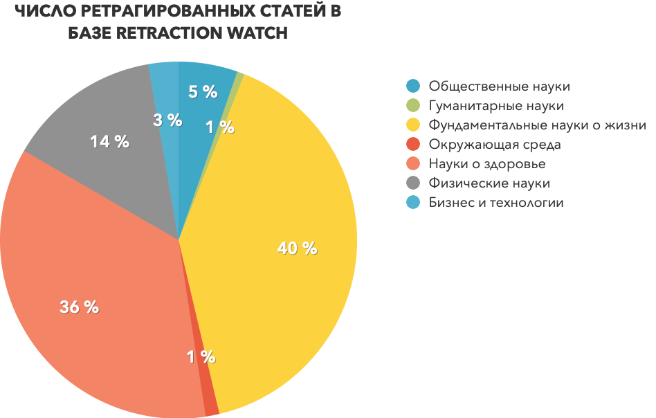 Согласно базе данных Retraction Watch, которая отслеживает ретракции в международной научной среде, по состоянию на начало декабря 2020 года 1245 журнальных статей [5] были подвергнуты ретракции из-за манипуляций с данными. Статьи по следующим специальностям были ретрагированы (диаграмма 1, категории не исключительны).