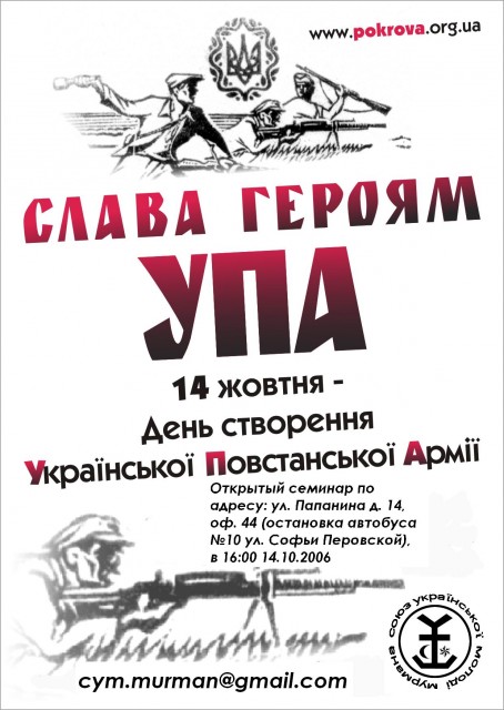 А в 2007 году мы решили провести семинар про ОУН/УПА в Мурманске в офисе оппозиционной партии "Яблоко" и расклеили информационные афиши по всему городу на коммунистических стендах. Это привело к скандалу, меня вызвали в ФСБ и в правительство Мурманской области.
