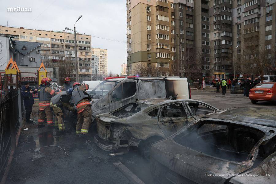В Киеве ракеты удали по объектам энергетической инфраструктуры, от обломков ракеты загорелись автомобили во дворе жилого дома. Были отключения электроэнергии.