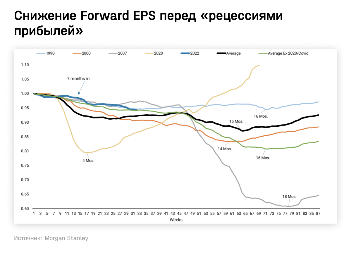 Несмотря на то что аналитики уже активно понижают прогноз по прибылям, обычно «рецессия прибылей» занимает больше времени.