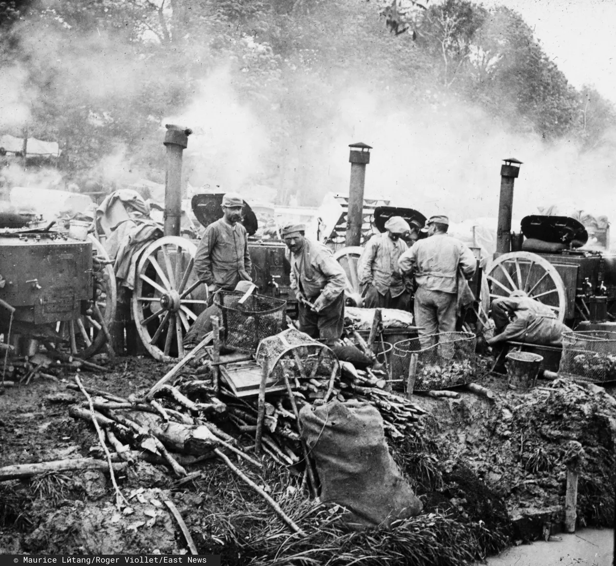 На переднем плане из грязи торчит пара сапог и половина человеческого тела. Этого в плен уже не возьмешь. Французы и немец стоят одной группой, постороннему наблюдателю кажется, что перед ним толпа сумасшедших.