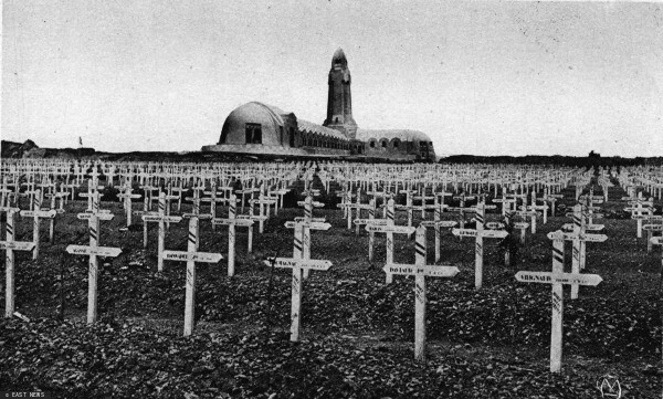 Там, у Флери, есть кладбище, на самом деле это братская могила. В ней лежат 10 тысяч человек — счастье жизни, разрушенное 10 тысяч раз, надежда уничтожена, небольшая группа людей сделана несчастной. Здесь была ничейная земля: с той стороны — немцы, с той — французы, между ними — никого. Жаворонки взмывают в воздух и поют бесконечную песню. Идет мелкий моросящий дождь.