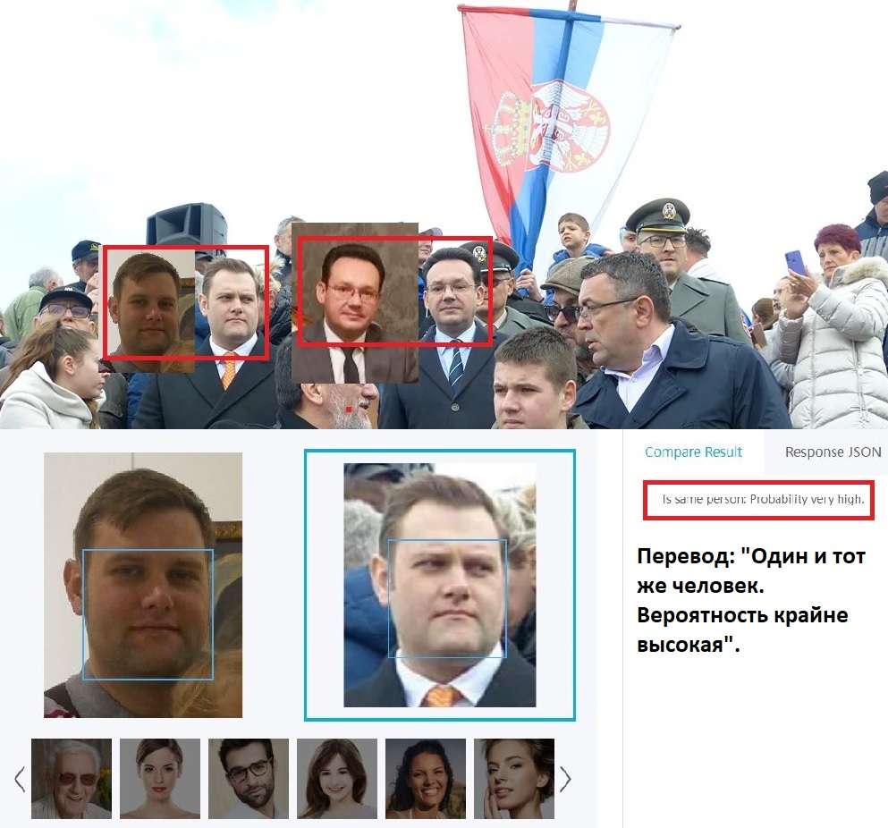 Радио Свобода нашло фотографию этого же мужчины, сделанную в Сербии в январе 2023 года – во время гуляний, посвященных православному празднику Богоявления. Сходство подтверждается анализом снимков системы распознавания лиц Pimeyes и сервисом компании Megvii. В мероприятии участвовал советник российского посольства Владлен Зеленин.