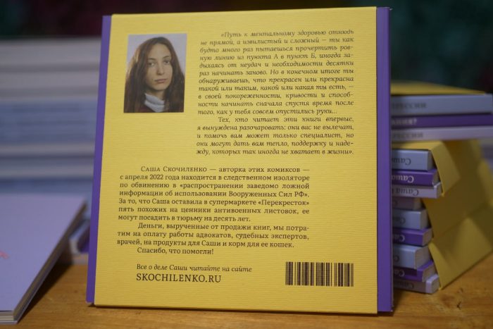 Презентация комиксов о депрессии от петербургской художницы Саши Скочиленко, обвиняемой в распространении «фейков» об армии, пройдет в Москве 19 марта. Об этом «Бумаге» сообщил друг Саши и выпускающий редактор ее книг Алексей Белозеров.