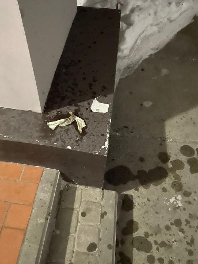 Фитиль и брызги от коктейля Молотова у входа в военкомат. Фото: Росгвардия Петербурга