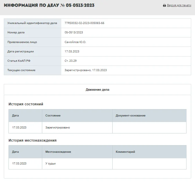 Затем силовики просмотрели мобильное устройство задержанного и составили на него протокол о распространении экстремистских материалов. Сообщение об этом появилось также на сайте Черемушкинского суда.