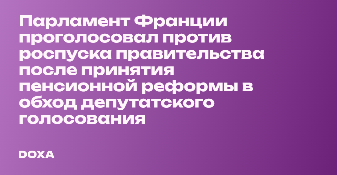 Нижняя палата парламента Франции проголосовала против роспуска правительства после принятия пенсионной реформы в обход депутатского голосования. Для отправки правительства в отставку не хватило всего девяти голосов.