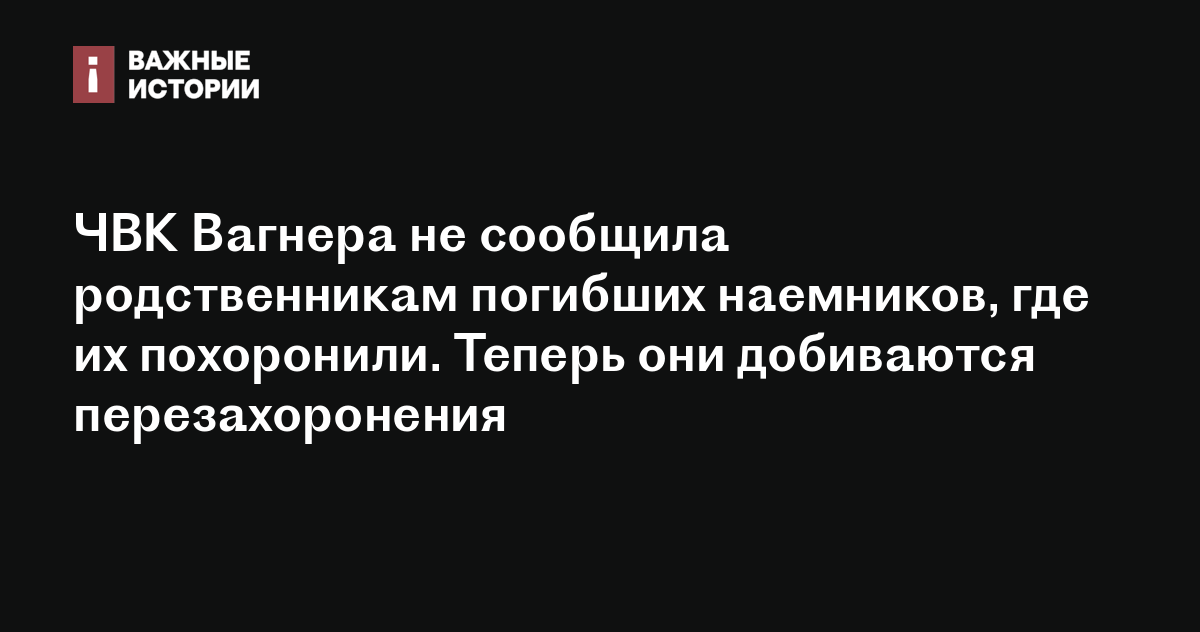 ЧВК Вагнера не сообщила родственникам погибших наемников, где их похоронили. Теперь они добиваются перезахоронения
