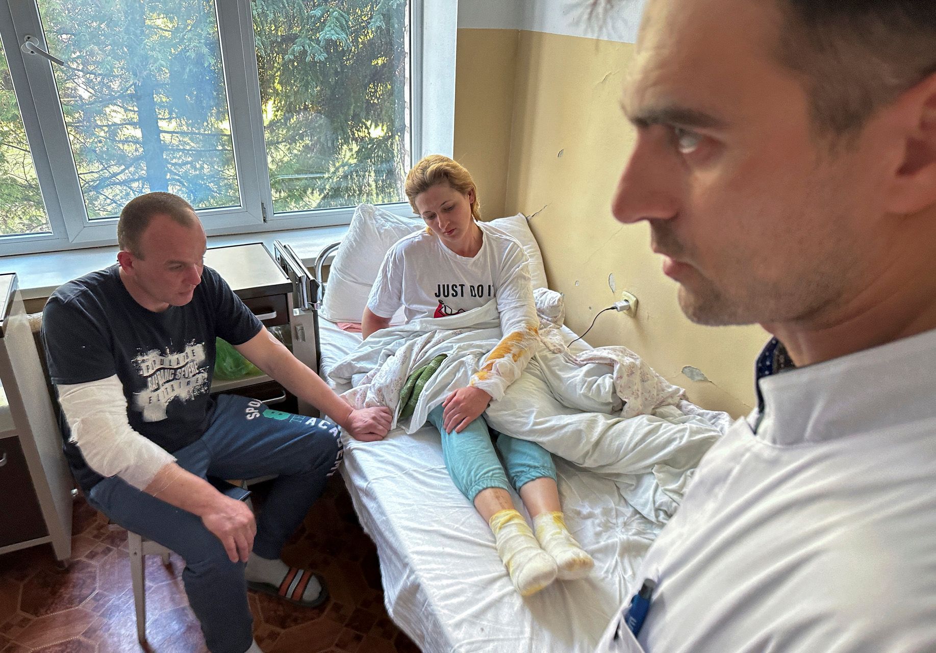 Раненые украинские солдаты на передовой в Донбассе