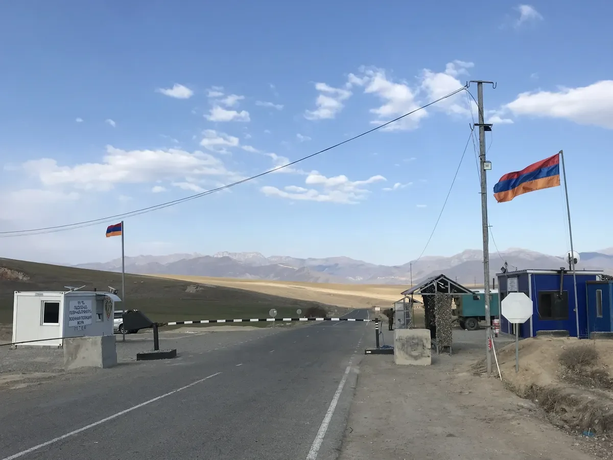 From the Armenian side, the border is guarded by an Armenian military police post. This is where Karabakh’s blockade begins. There’s another post like that in Stepanakert, in between the two there are Russian peacekeepers and Azerbaijani “ecologists” who organised the blockade.